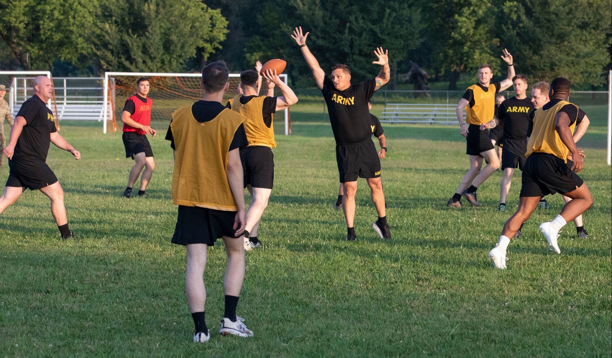 “It is important for us to come together like this to get that face-to-face interaction that you don’t get on a day-to-day basis,” said Staff Sgt. Evan Ruchotzke, a mass communications specialist assigned to the 19th Public Affairs Detachment, 1st Inf. Div., who played on the staff sergeants’ team.