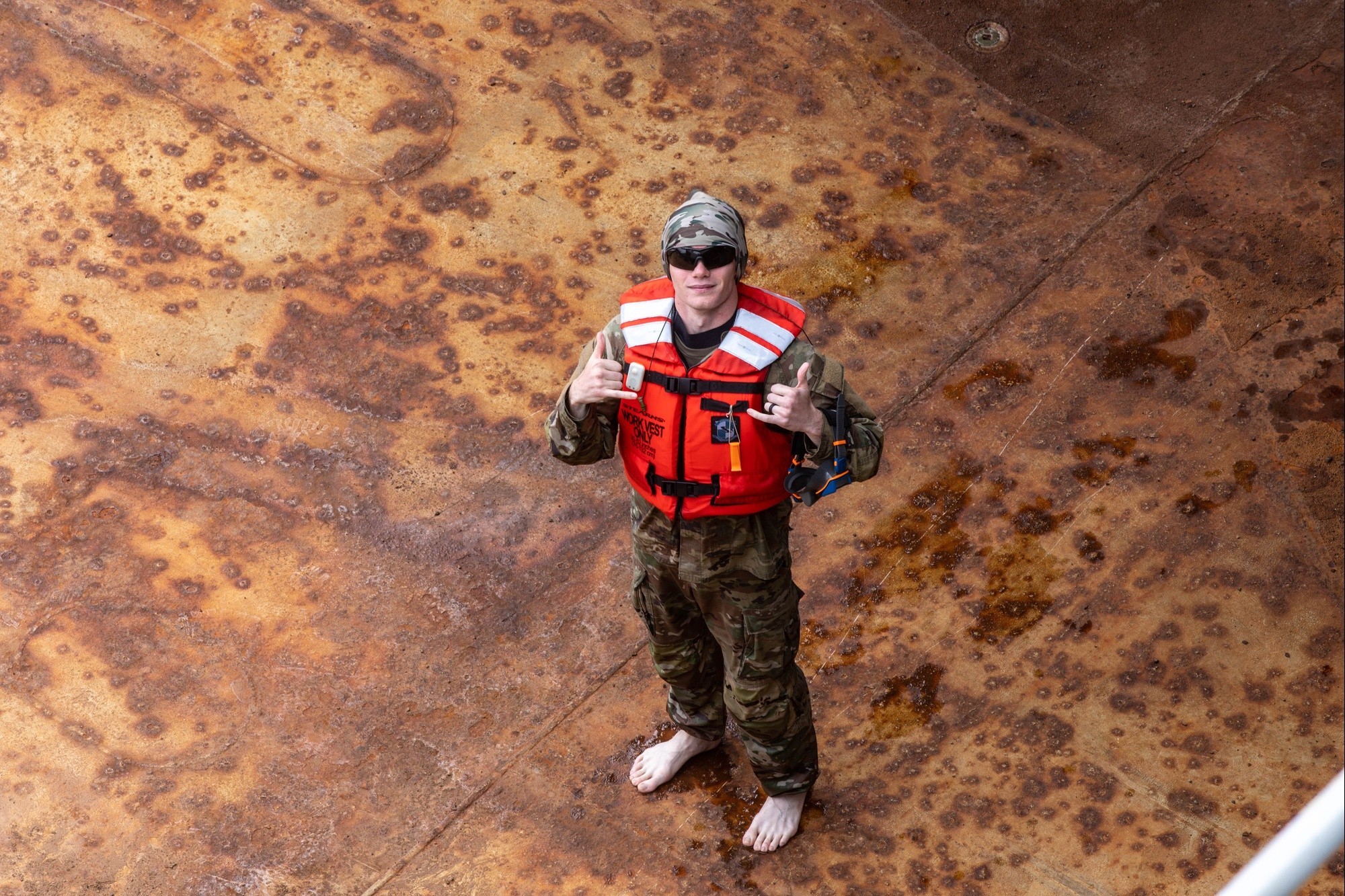 “I think it’s (the training is) good because you never know what’s going to happen. We do a lot of missions between these inner island runs and over the ocean,” said Chief Warrant Officer 2 Michael Arnett, third mate on LSV-3. “Our main ideal evacuation, if we had a casualty, would be to get a helicopter overtop. This helps us assist, and for aviation, it’s nice to have that capability to rescue a victim as quickly as possible.”