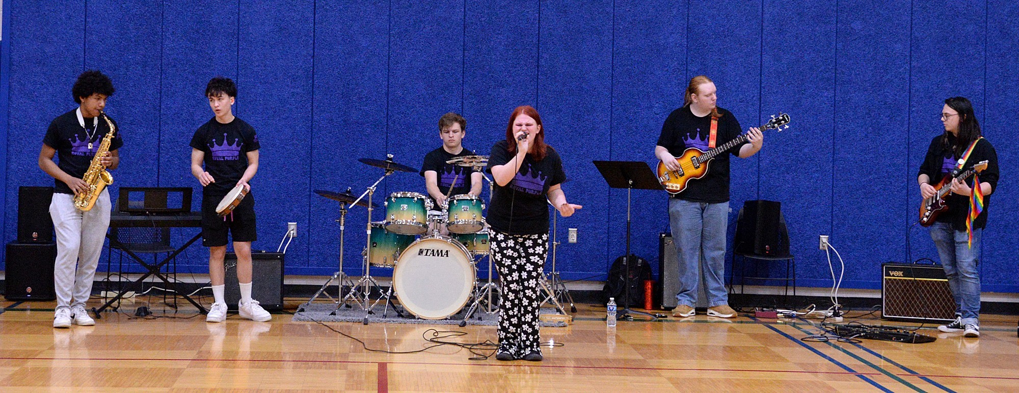 Following the assembly, Royal Purple — including members Parvin; Torres, senior at Lansing High School; Clayton Anderson, senior at LHS; Jonathan Duncan, junior at LHS; Liam Johnson, senior at LHS; and Darien Richards, senior at LHS — performed for more than an hour.