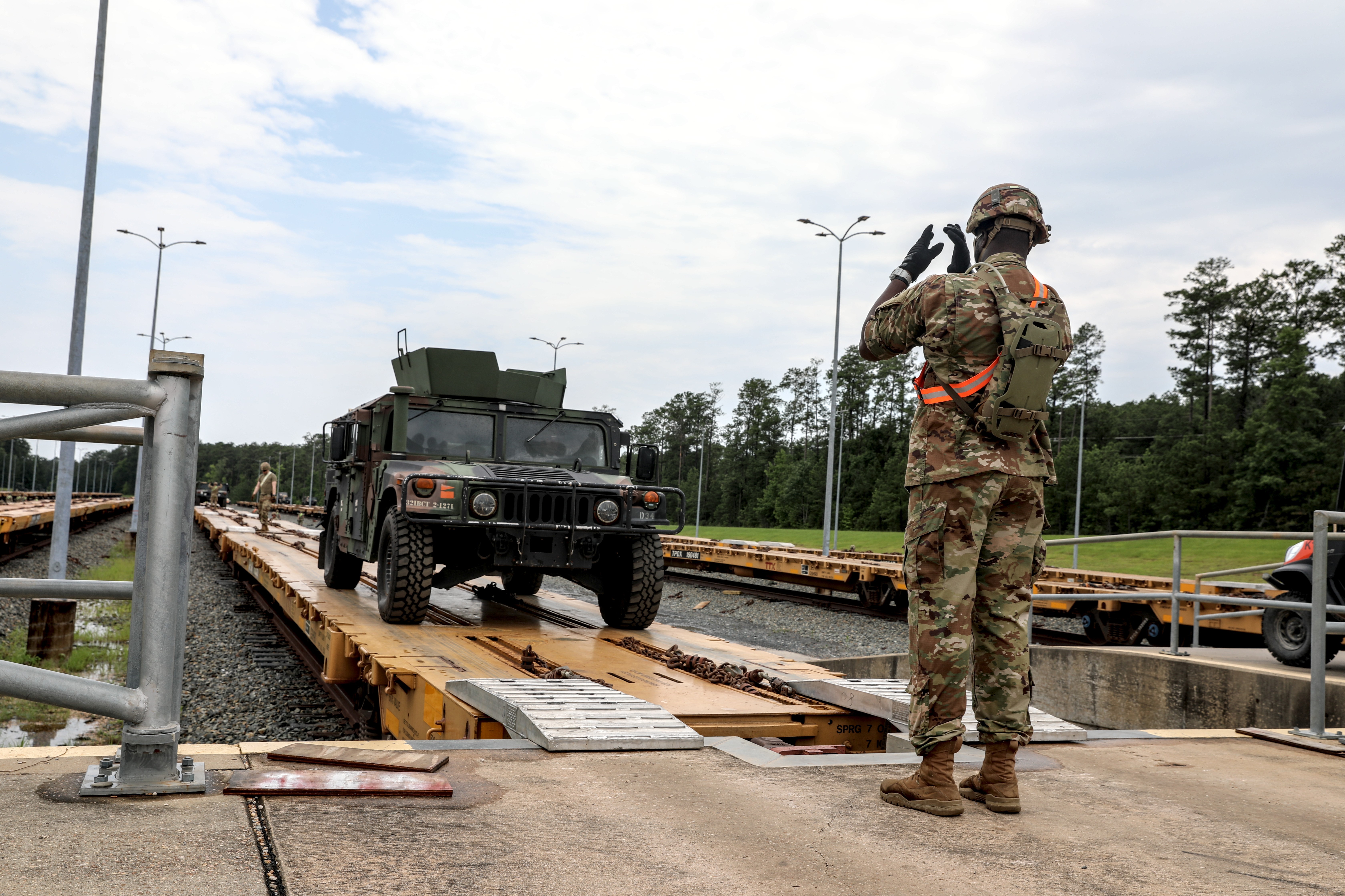 More than 5,000 Soldiers have arrived at the Joint Readiness Training Center on Fort Johnson, Louisiana, to take part in a month-long training exercise led by the 32nd Infantry Brigade Combat Team. As they arrive, the Soldiers in-process, gather gear, help offload vehicles from trains and semis, perform maintenance checks, and install MILES (multiple integrated laser engagement system) on everything from personal weapons to all varieties of vehicles, all while acclimating to the Louisiana heat and humidity.