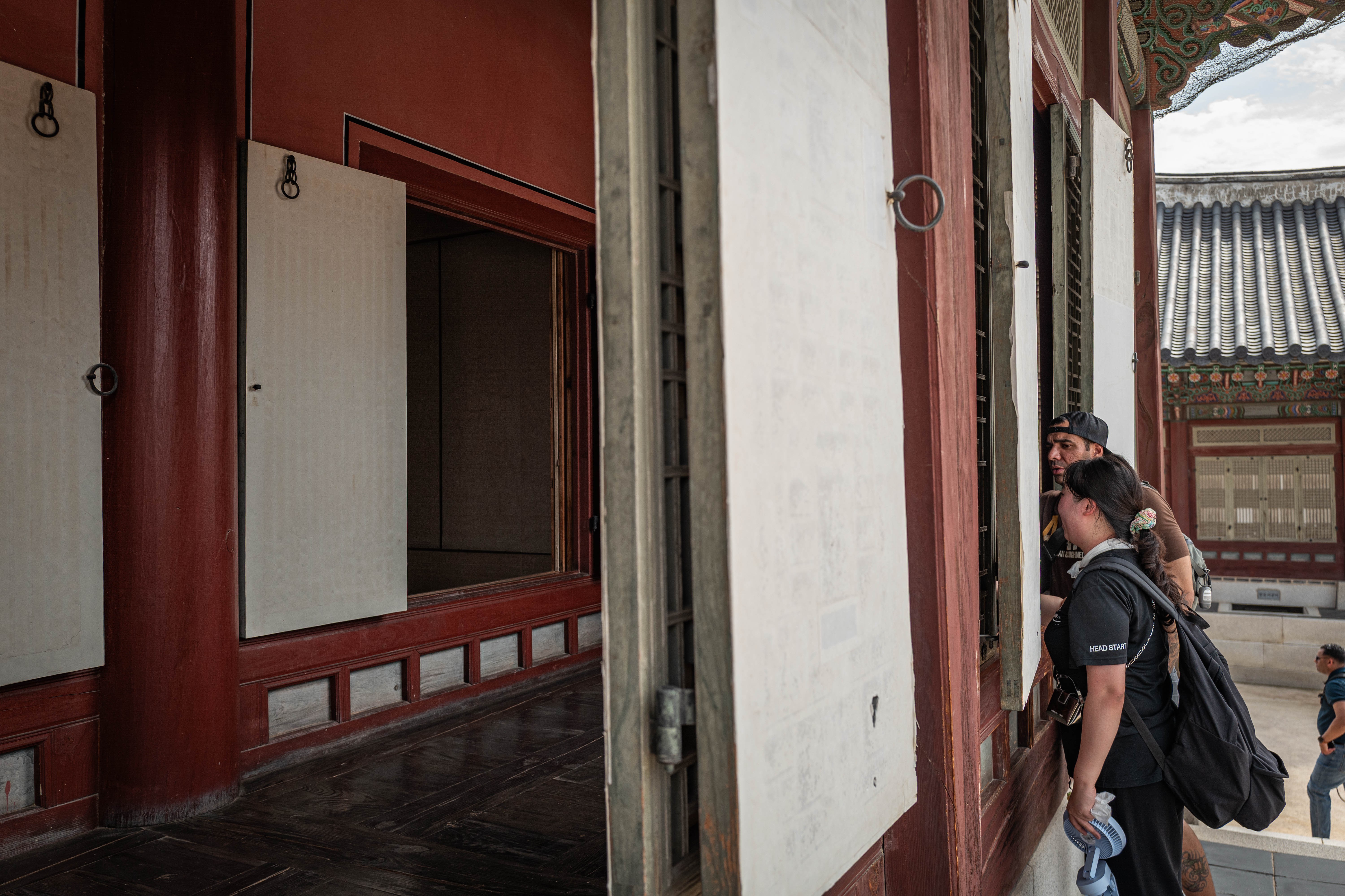 U.S. Army Soldiers tour the grounds at Gyeongbokgung Palace in Seoul, Korea, July 31, 2025. Soldiers serving at Camp Casey traveled to Seoul on a trip hosted by Gyeonggi-Do province as part of an effort to welcome service-members who have recently arrived in Korea. (U.S. Army photo by Sgt. Charles Leitner)