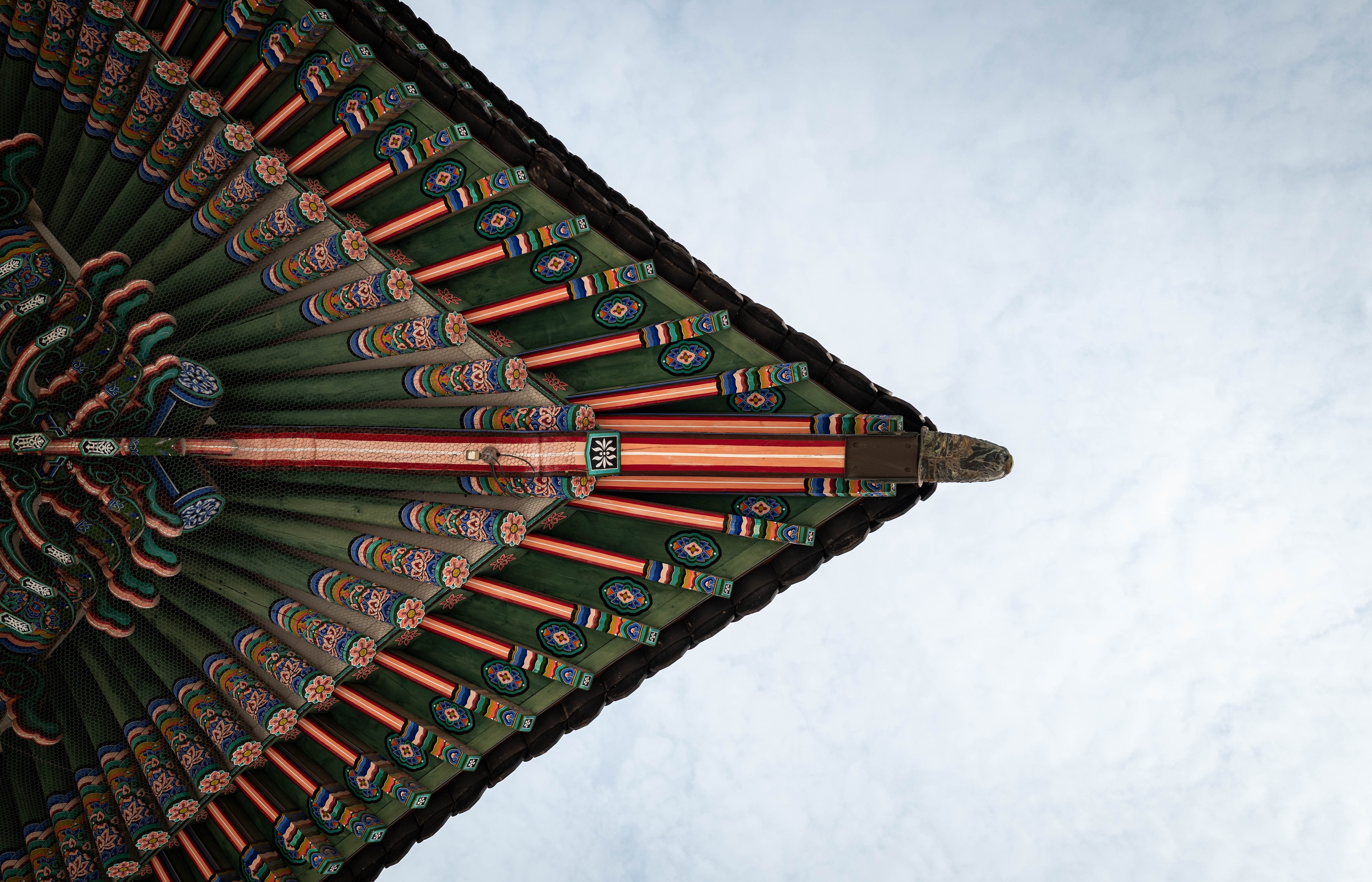 Eaves, colorfully painted in a traditional way, holds up a roof at Gyeongbokgung Palace in Seoul, Korea, July 31, 2025. U.S. Army Soldiers serving at Camp Casey traveled to Seoul on a trip hosted by Gyeonggi-Do province as part of an effort to welcome service-members who have recently arrived in Korea. (U.S. Army photo by Sgt. Charles Leitner)