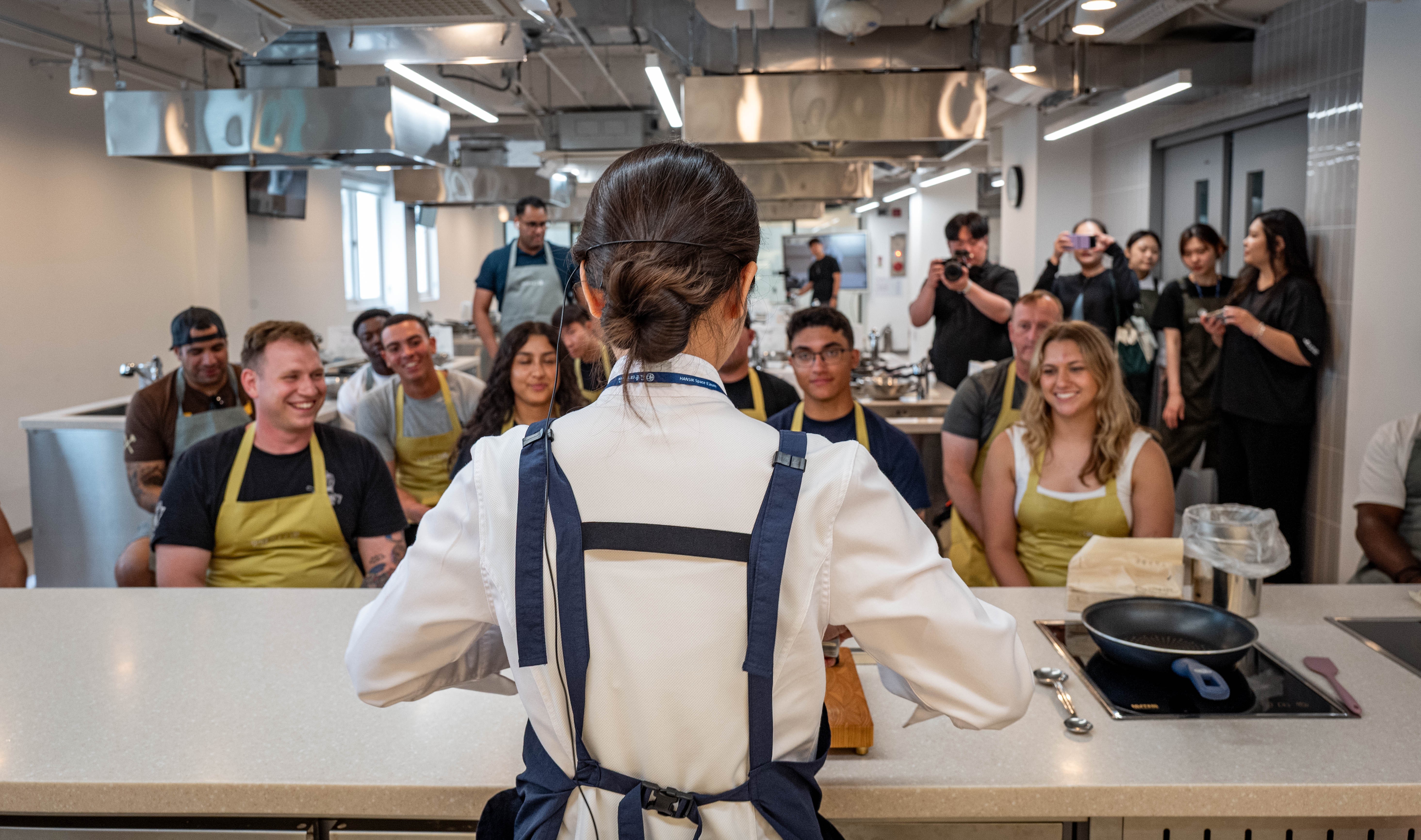 Seung An Oh, an instructor at the Hansik Space E:EUM, a place dedicated to teaching visitors about Korean culture and food, teaches U.S. Army Soldiers how to make Korean pop rice snacks in Seoul, July 31, 2025. Soldiers serving at Camp Casey traveled to Seoul on a trip hosted by Gyeonggi-Do province as part of an effort to welcome service-members who have recently arrived in Korea. (U.S. Army photo by Sgt. Charles Leitner)