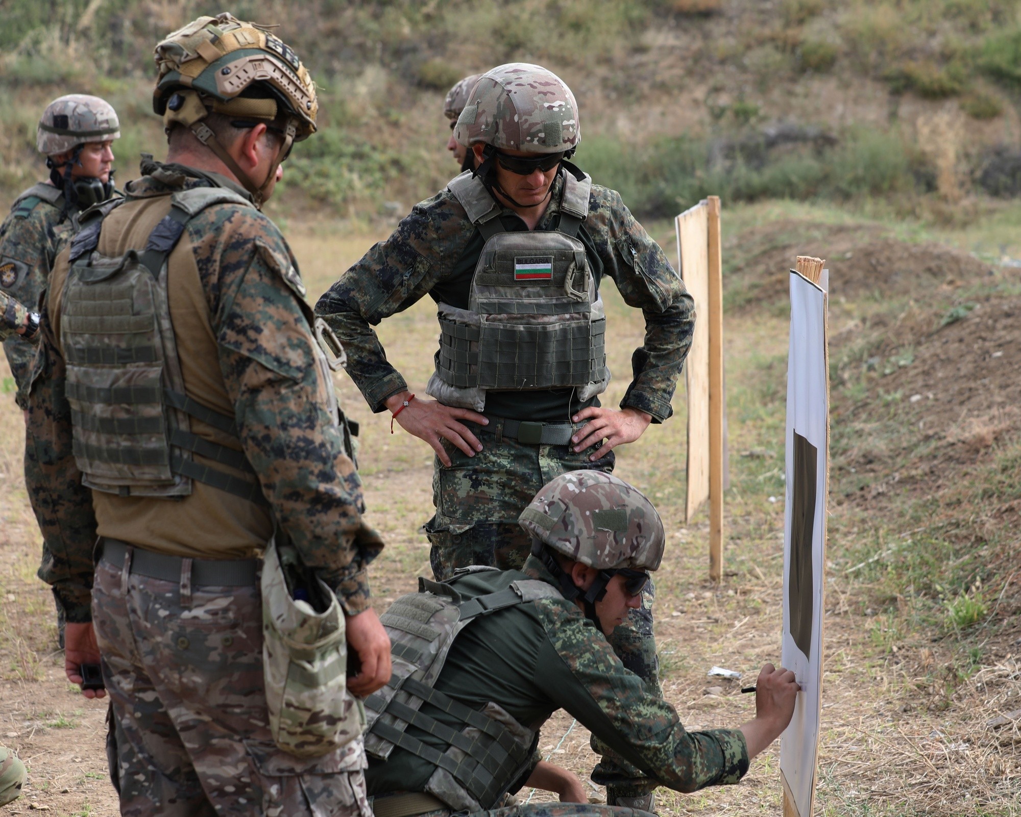 Service members with the 22nd Multinational Battalion prepare for an Agile Spirit live fire exercise at Vaziani Training Area, Georgia, Aug. 3, 2025. Agile Spirit 25 underscores the U.S. commitment to security and stability in the Black Sea region and highlights the importance of strong alliances and partnerships in addressing shared security challenges. (