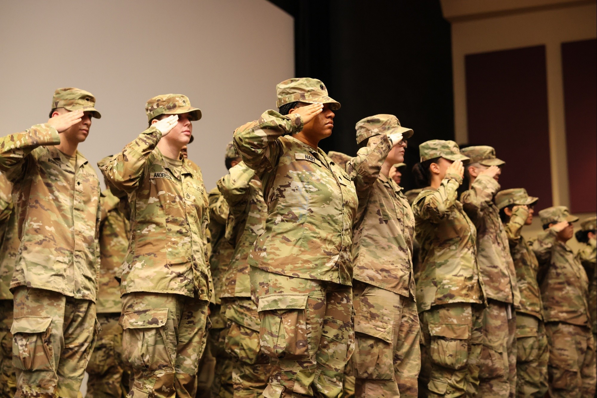 The welcome-home ceremony was brief — by design — so Soldiers could quickly gather their bags and head home with their families. But the joy in the theater was unmistakable.