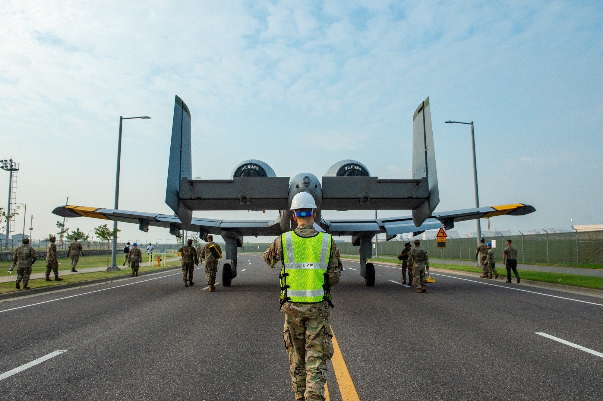 Moving the A-10 was a complex, multi unit operation that required shutting down the airfield and Pacific Victors Avenue, said U.S. Army Capt. Kevin N. Pham, operations officer, Directorate of Public Works, U.S. Army Garrison Humphreys. Soldiers, Airmen and civilian personnel worked in unison to ensure the entire process was carried out safely from start to finish.