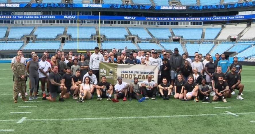 FORT BRAGG, N.C. — Soldiers joined forces with the Carolina Panthers during the USAA Salute to Service Bootcamp, a high-energy event that blended NFL-style competition with military pride and teamwork on Aug. 11, 2025.