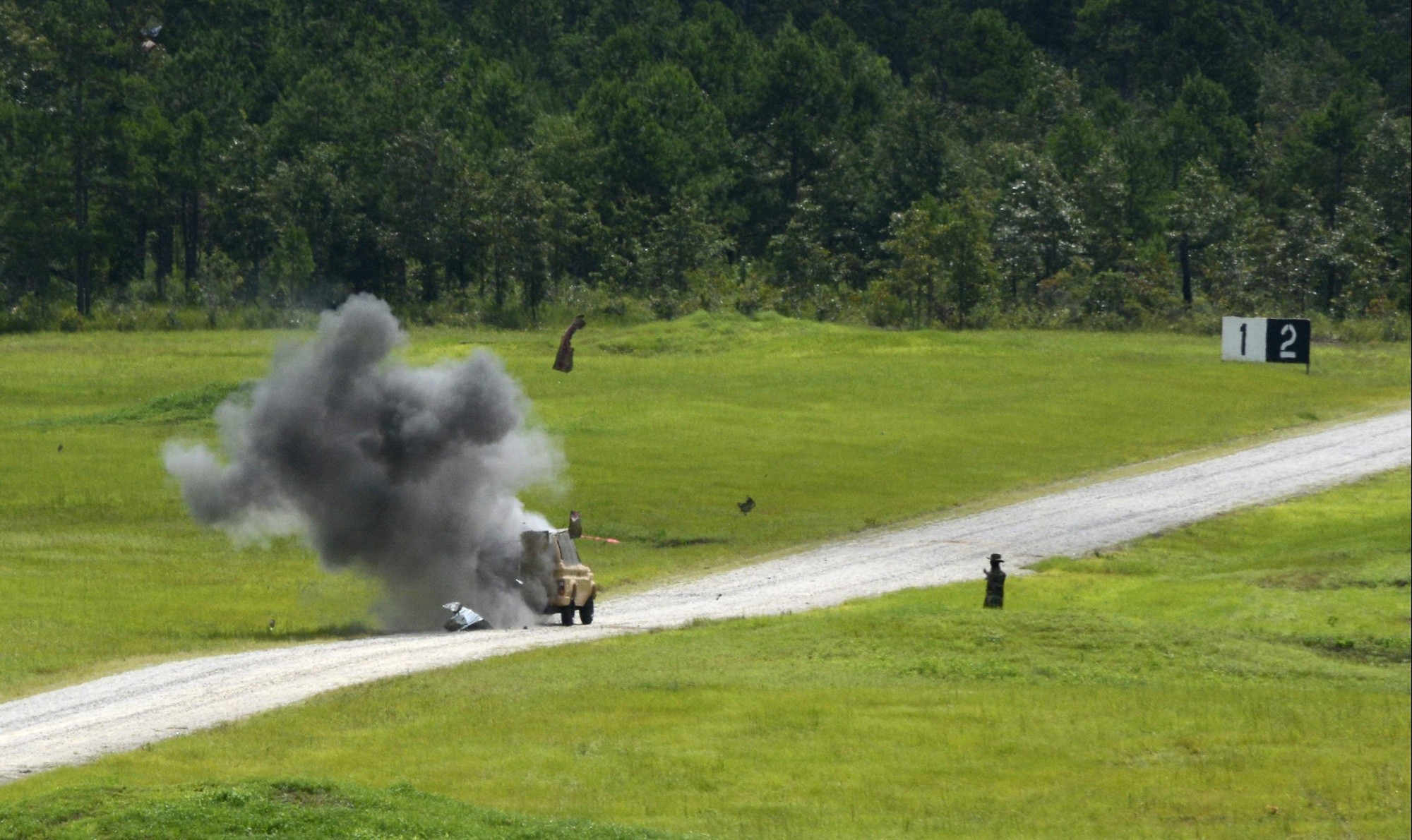 The summit took to Fort Rucker’s ranges Aug. 13, when system developers and industry partners exhibited both fielded and in-development systems. Soldiers and industry personnel conducted a live demonstration of lethal UAS, showing drones armed with bomb and grenade dropping systems, 12-gauge shotguns, 40mm grenade launchers, and various explosive payloads. First-person-view (FPV) drones were demonstrated destroying moving ground vehicles and intercepting other drones mid-flight.