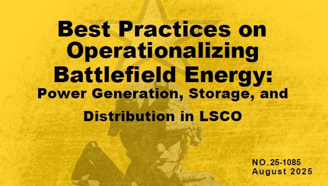 Download the full article here: No. 25-1085, Best Practices on Operationalizing Battlefield Energy (Aug 25) [PDF - 2.2 MB]