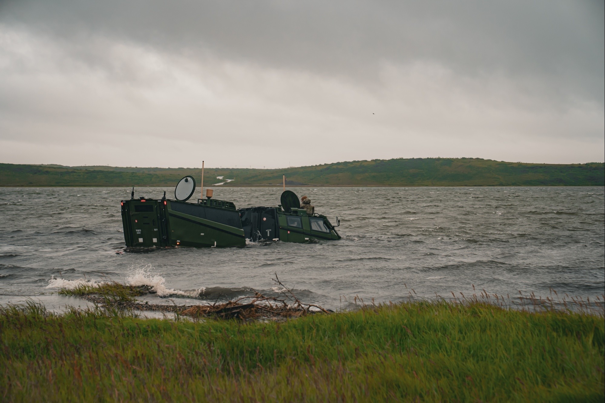 The highlight of the mission came when the unit executed a CATV swim across the saltwater lagoon along Kotzebue Sound. This marked the first time the vehicle had been swum in Arctic waters north of the circle. The environment challenged crews with rapidly changing tides, wind-driven waves and cold, silty water, conditions far different from inland training sites and a true test of the CATV’s amphibious capabilities.