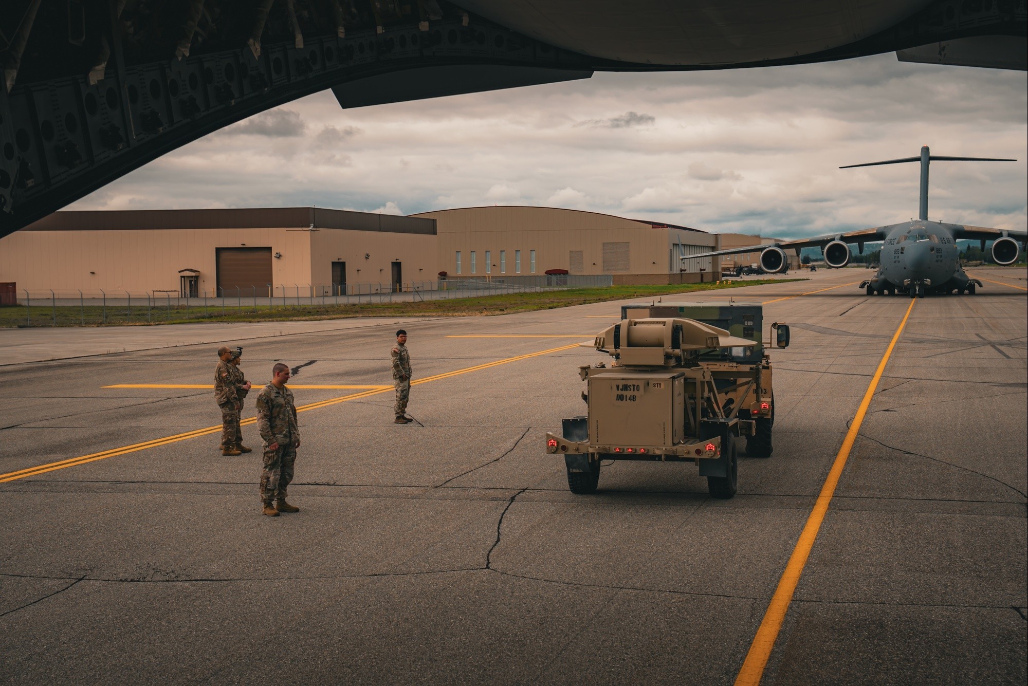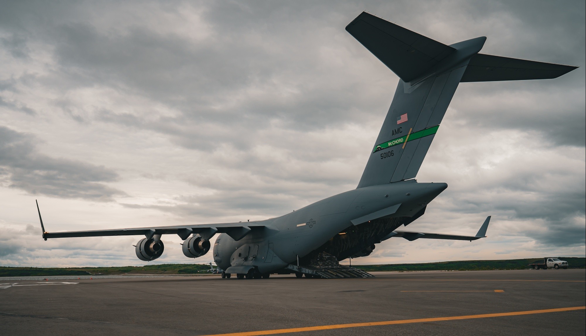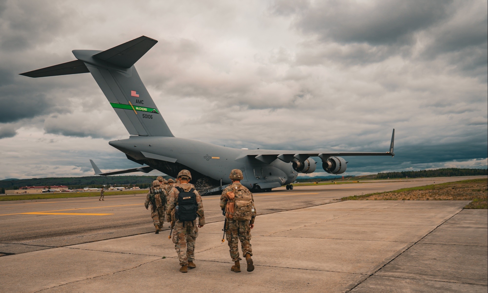 Soldiers Soldiers assigned to 5th Squadron, 1st Cavalry Regiment, 1st Infantry Brigade Combat Team, 11th Airborne Division unload equipment onto a U.S. Air Force C-17 Globemaster in Kotzebue, Alaska, while conducting an out-of-sector deployment readiness exercise Aug. 2025The training validated the unit’s ability to rapidly deploy and operate in remote Arctic conditions. (U.S. Army photo by Correy Mathews)