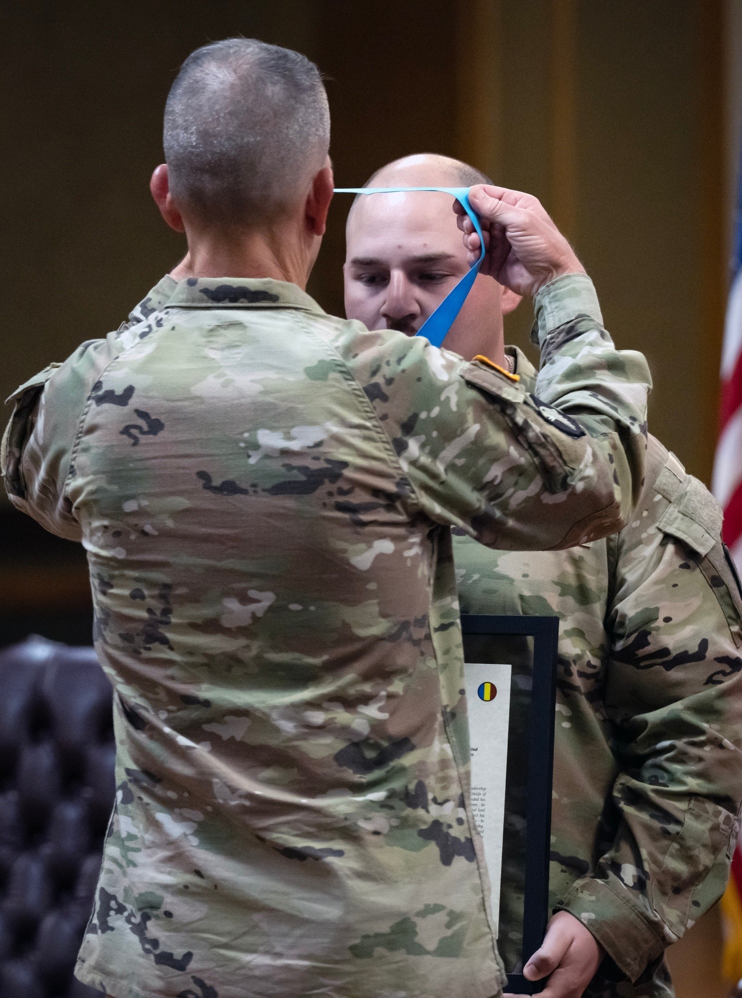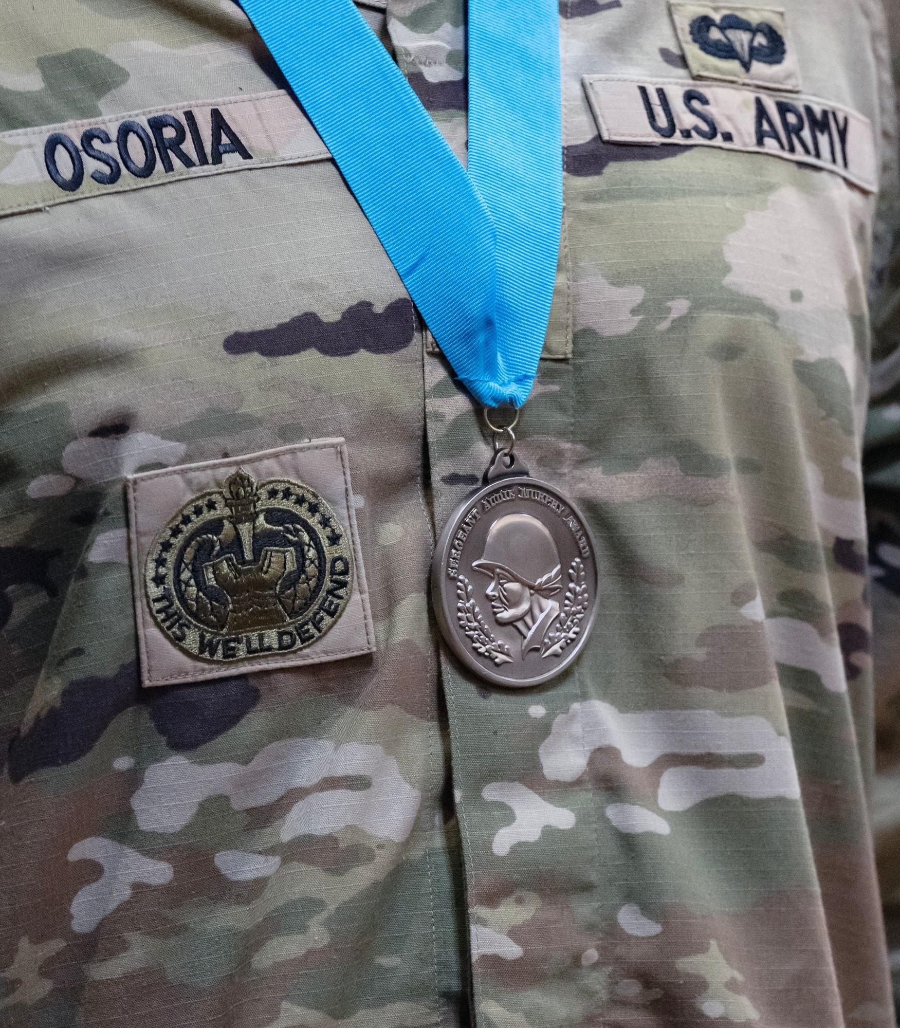 “The uniform you wear is more than fabric,” he said to Hughes and Osoria. “It’s a thread that connects us to every Soldier before us and every Soldier beside us. Our actions, our words and our examples don’t just echo in the moment. They echo for years, across units, across deployments, and even across generations.”