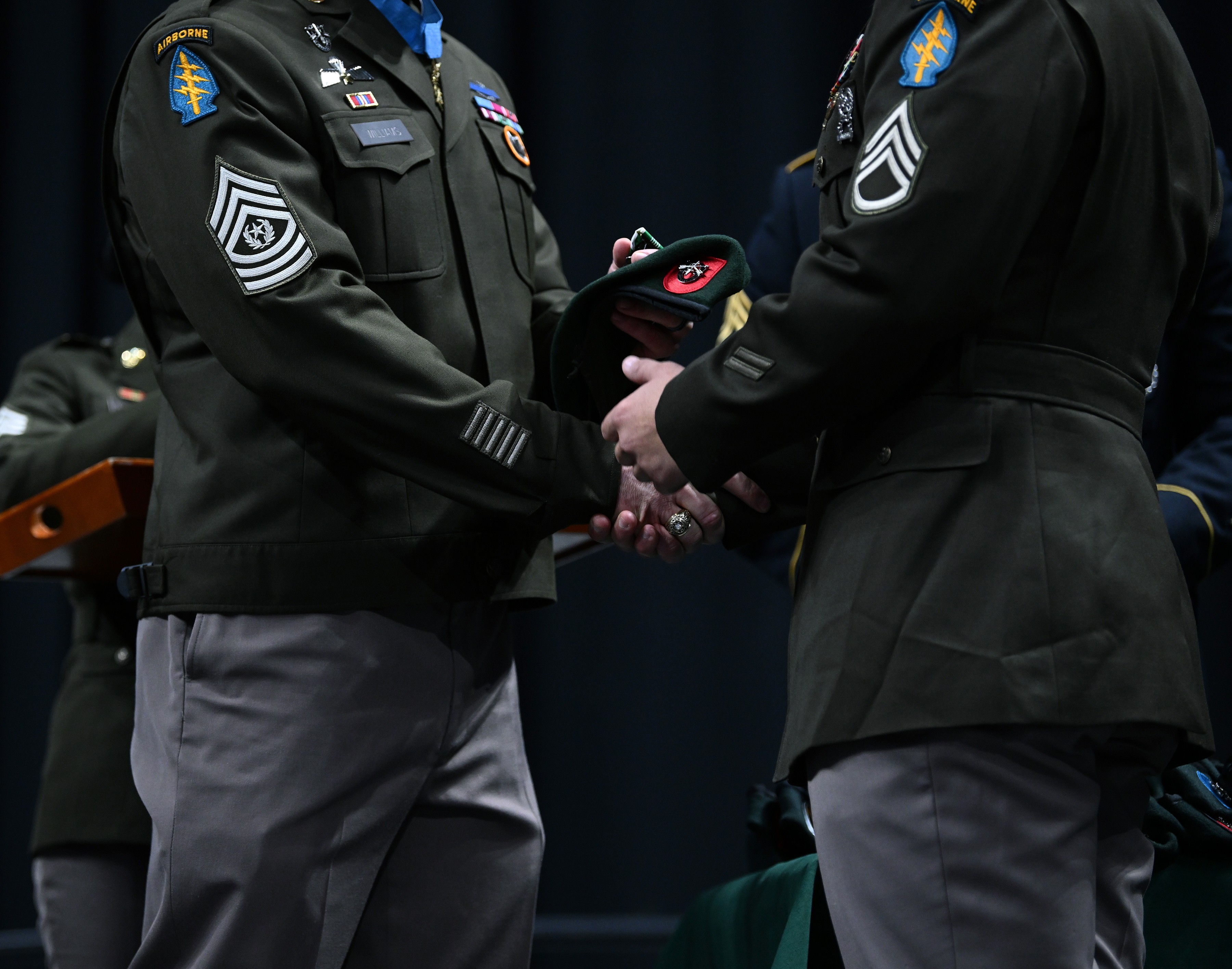Following Williams’ remarks, the graduates donned their Green Berets. The ceremony concluded with the Special Forces Creed, The Ballad of the Green Beret and the Army Song.