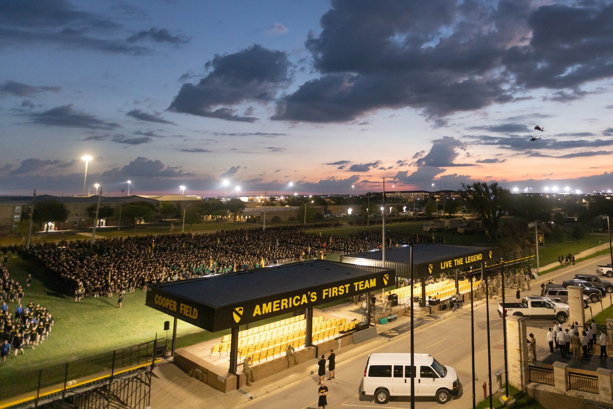 View of Cooper Field and 1st Cavalry Division during the Cav Week 104 closing ceremony at Fort Hood, Texas, Sept. 3. The ceremony honored and celebrated the Troopers of the 1st Cavalry Division and commemorated 104 years of service. (U.S. Army photo by Spc. Hector Blanco)
