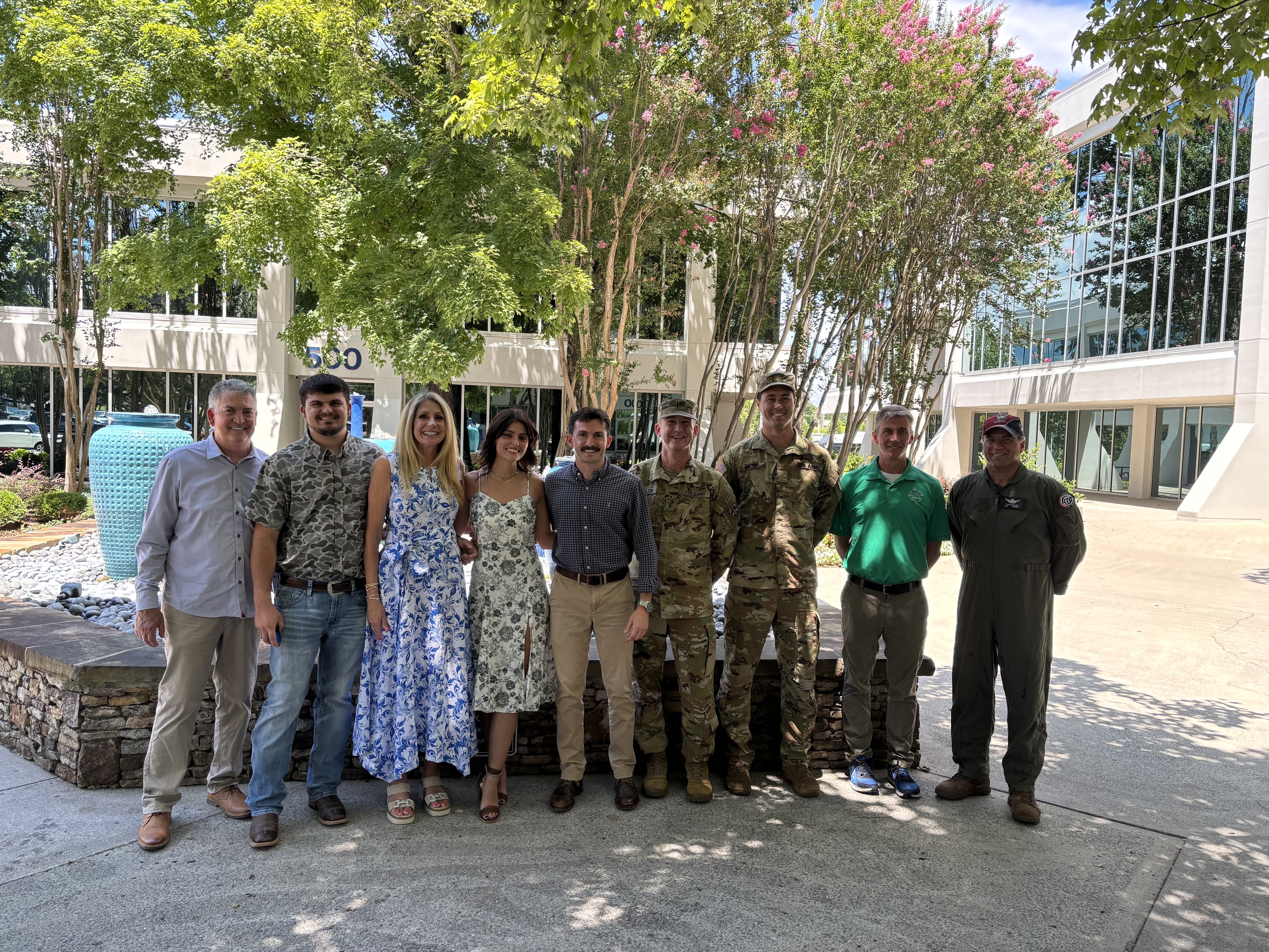 Pictured from left: Joey Johnson, Father, Presley Johnson, Brother, Pam Johnson, Mother, Haley Rhoden, Girlfriend, Parker Johnson, RTC flight test engineer and new Army Warrant Officer Candidate, CW3 Kyle Gaylor, RTC XP, Maj. Chris Smith, RTC XP, Chris Reid, Army Civilian XP, and Todd Buller, Army Civilian XP.