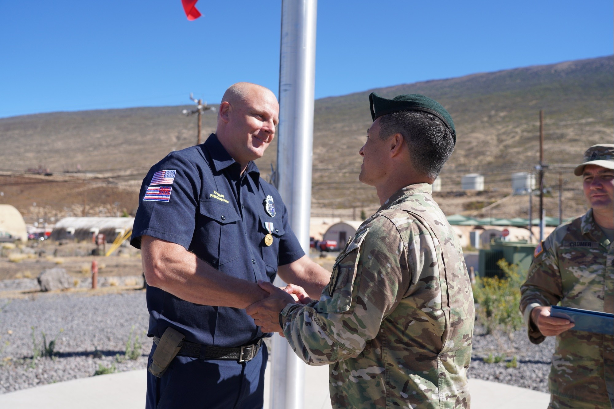 The actions Heslop took next that day were recognized with a Department of the Air Force Command Civilian Award for Valor, presented by Army Lt. Col. Timothy Alvarado, commander, at Pohakuloa Training Area in Hilo, Hawai’i, on September 11. Bestowing the award on the 24th anniversary was a fitting honor to Heslop’s selflessness in remembrance of the heroism reflected on 9/11.