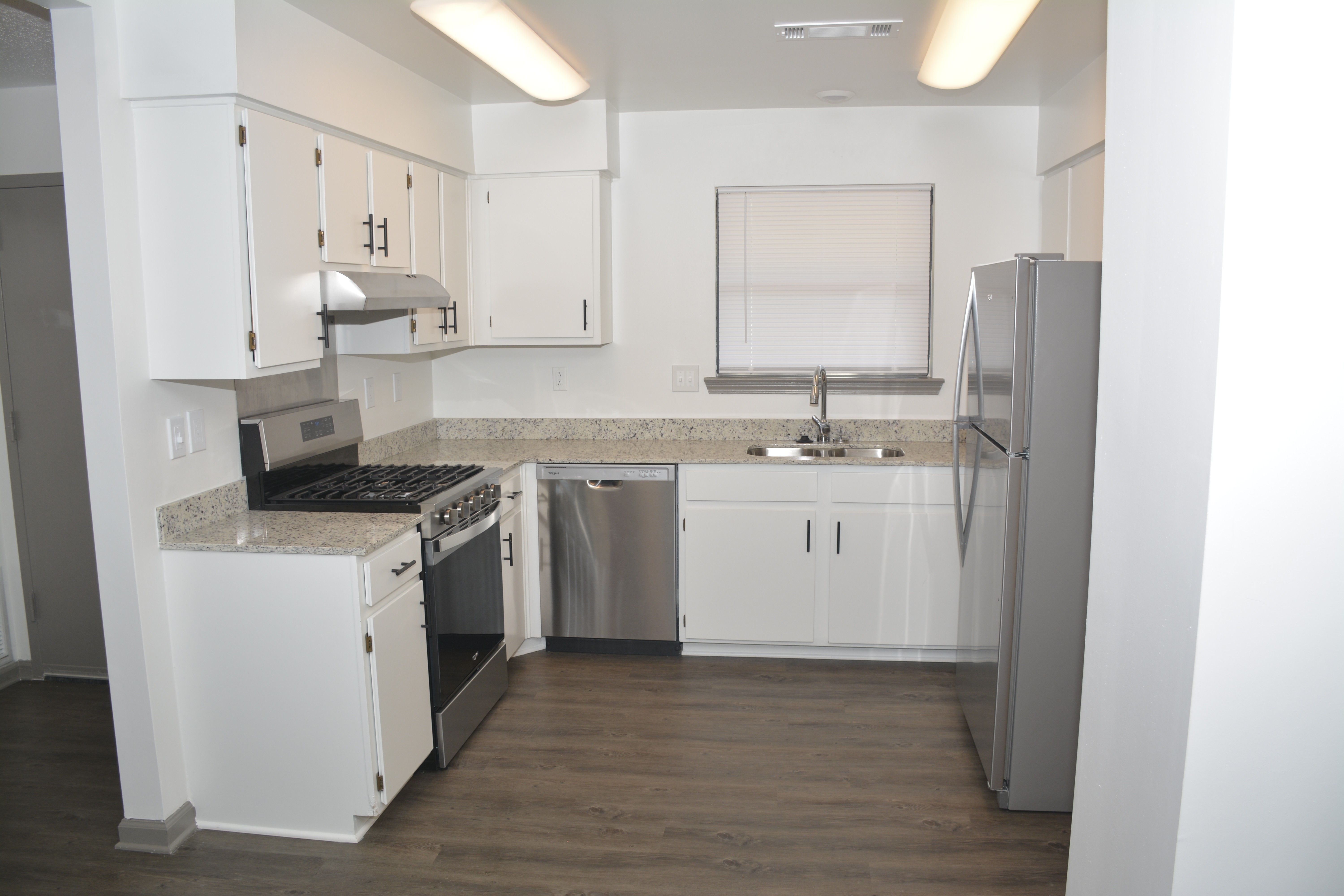 Looking at the renovated homes, the new features not only improve the home, but alter the floorplan as well. In the kitchen area a bar is being removed, opening the kitchen up to the living/dining area giving the home a larger, more open feel. The kitchens are also getting a facelift with new countertops, and stainless steel appliances. The new gas stoves also feature a popular air fryer mode.