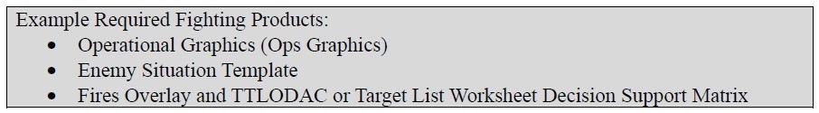 Units and leaders must develop their fighting tools during training. Developing personal products like map boards, reference products, and “cheat sheets” prior to execution enables leaders to test and refine their products. Understanding what you need to assist you in planning and operations, as well as refining their use, removes mental friction while planning quickly. Organizationally, developing products, overlays and other reference and planning tools during training allows leaders to practice and become comfortable using them. Below are some personal products that leaders should consider developing for themselves and their organizations.