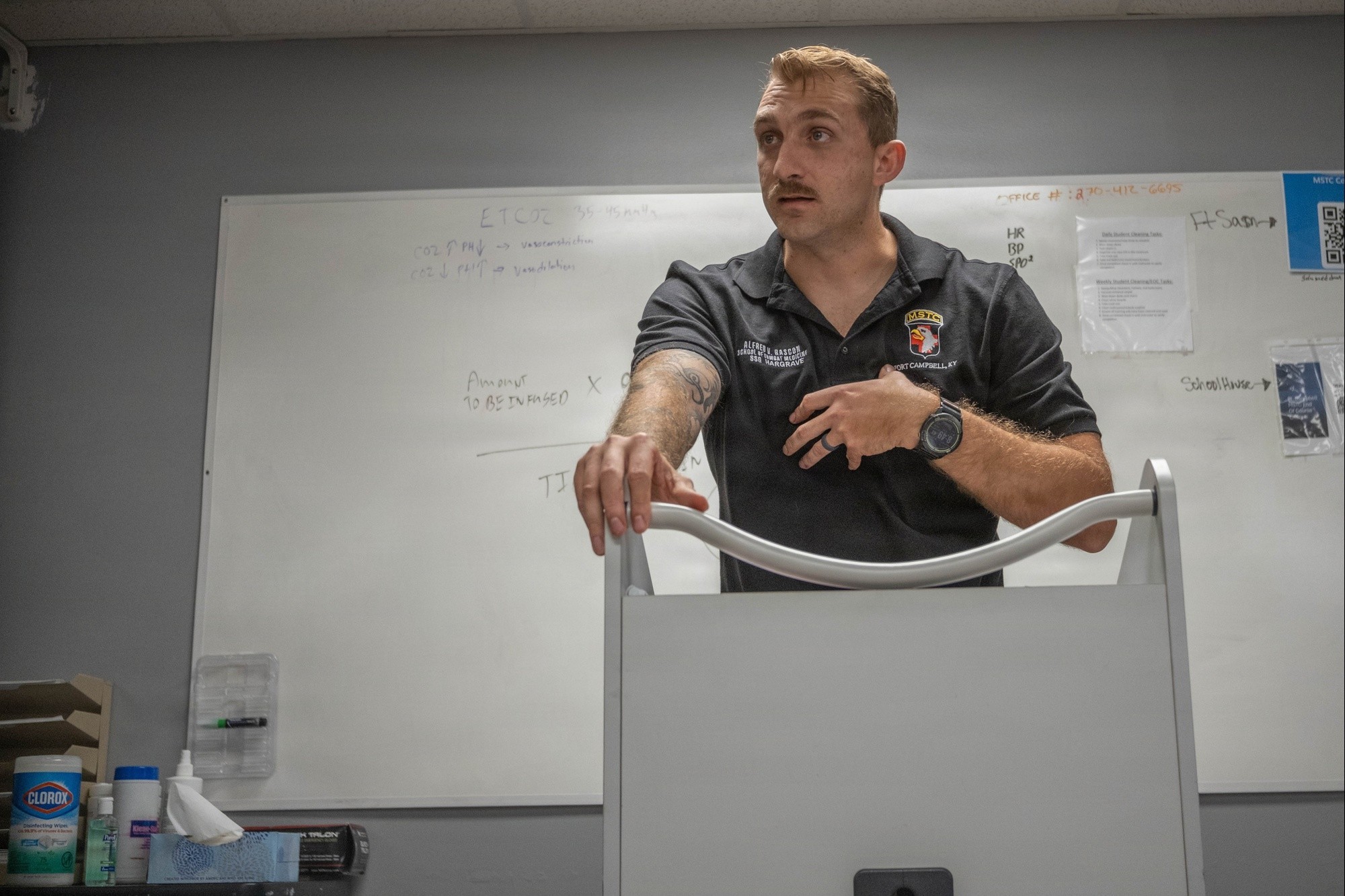 “Tons of medics are super busy doing their jobs which are really important but we want them to remember ‘I’m a 68W. I’m an expert in trauma medicine,’” said Staff Sgt. Stevan Hargrave, the course coordinator at the Fort Campbell Medical Simulation Training Center (MSTC). “So they come here, we put them out in the dirt with a bleeding casualty, maybe you haven’t done it in a while, cool, you’re gonna figure it out.”