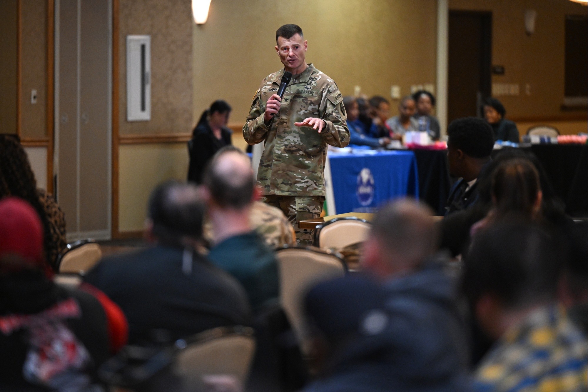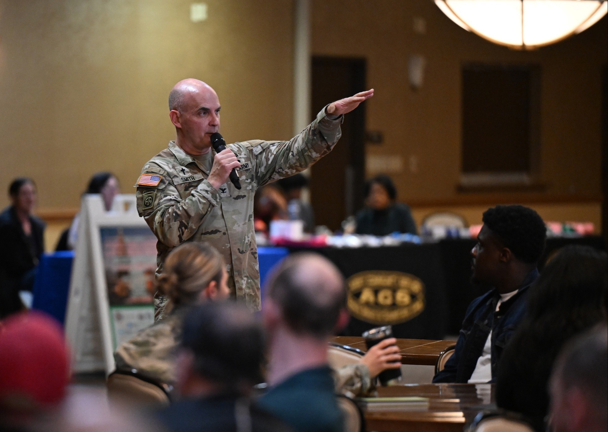 Unit commanders, directors and representatives of various on-post agencies stayed after the formal portion of the even to talk to those who didn’t want to ask questions in public.
