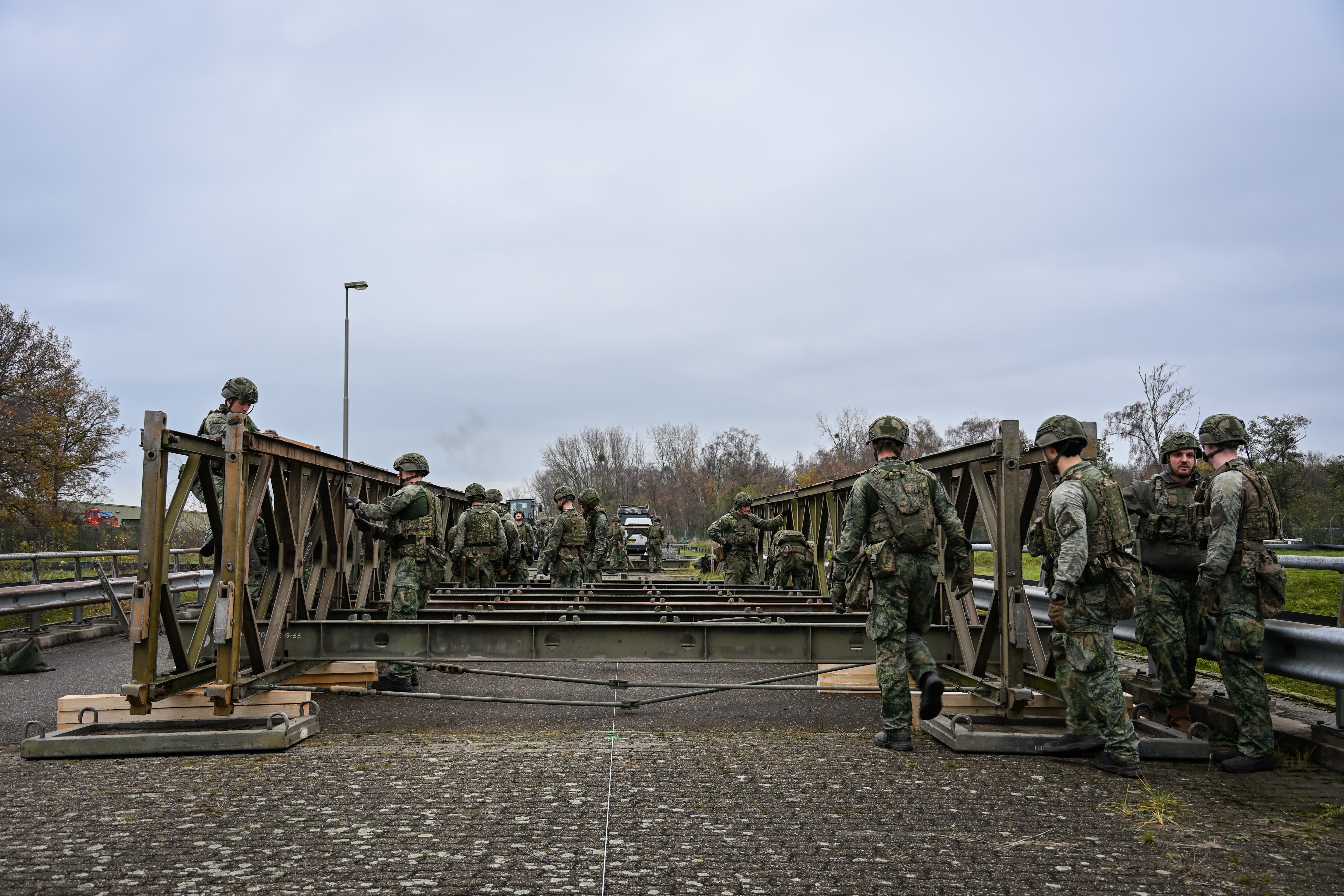 Approximately 25 Dutch Soldiers constructed the bridge over the existing superstructure - which could no longer support large vehicles - connecting Brunssum central to Brunssum East (BRN-E). The new structure enables safe access for large fire, emergency response and military vehicles by boosting the load-bearing capacity from 20 to 55 tons.