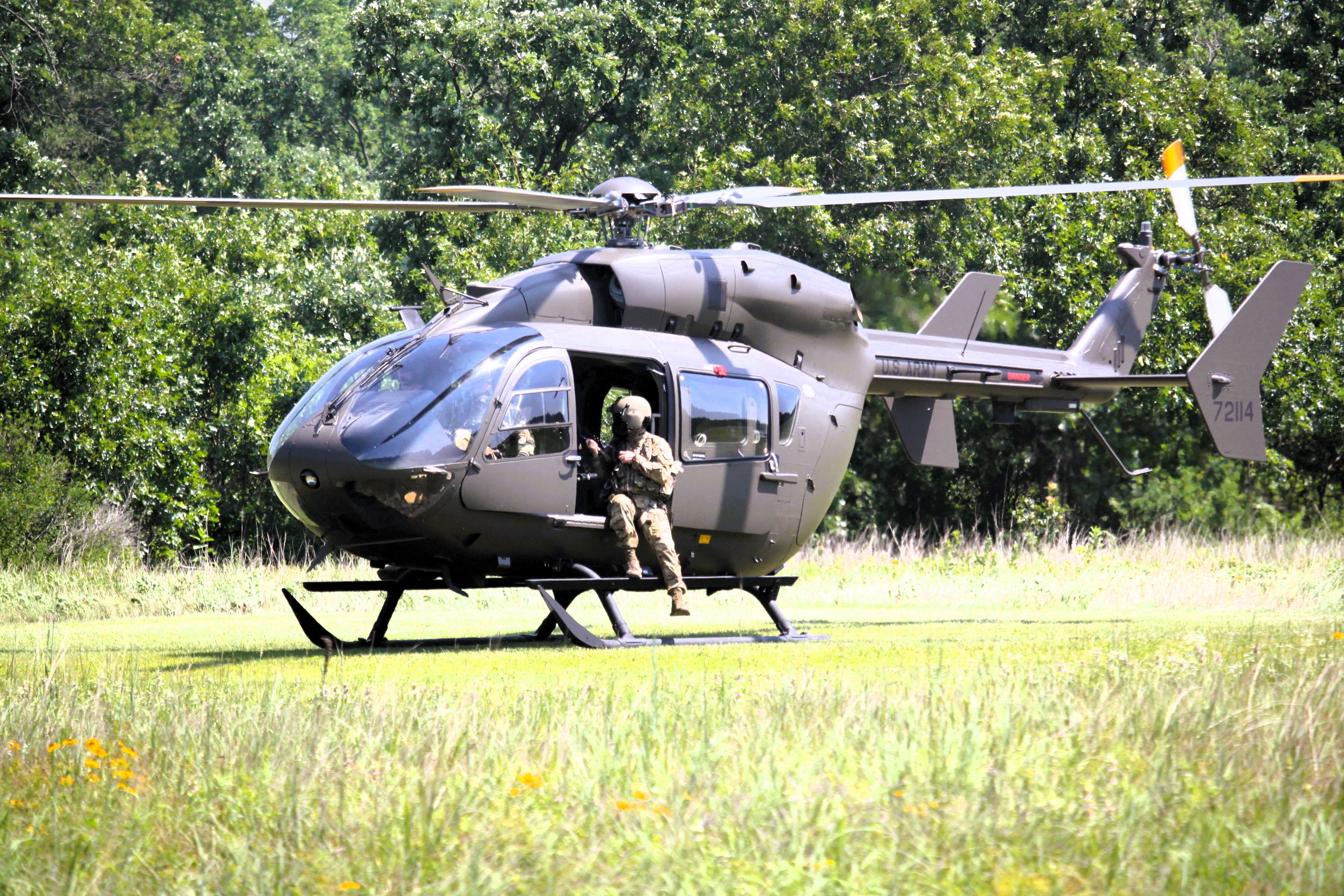 Aviation Soldiers with the Iowa National Guard operate a UH-72A Lakota helicopter July 14, 2025, on South Post at Fort McCoy, Wis. According to a fact sheet about the UH-72A, the airframe “provides a flexible response to homeland security requirements such as search and rescue operations, reconnaissance and surveillance, and medical evacuation (MEDEVAC) missions.” The fact sheet also states the UH-72A Light Utility Helicopter “will conduct general support utility helicopter missions and execute tasks as part of an integrated effort with other joint services, government agencies, and non-governmental organizations.” Soldiers with the Iowa National Guard’s 248th Aviation Support Battalion and Detachment 1, Company A, 1st Battalion, 376th Aviation Regiment were completing training at Fort McCoy for this event. (U.S. Army Photo by Scott T. Sturkol, Public Affairs Office, Fort McCoy, Wis.)