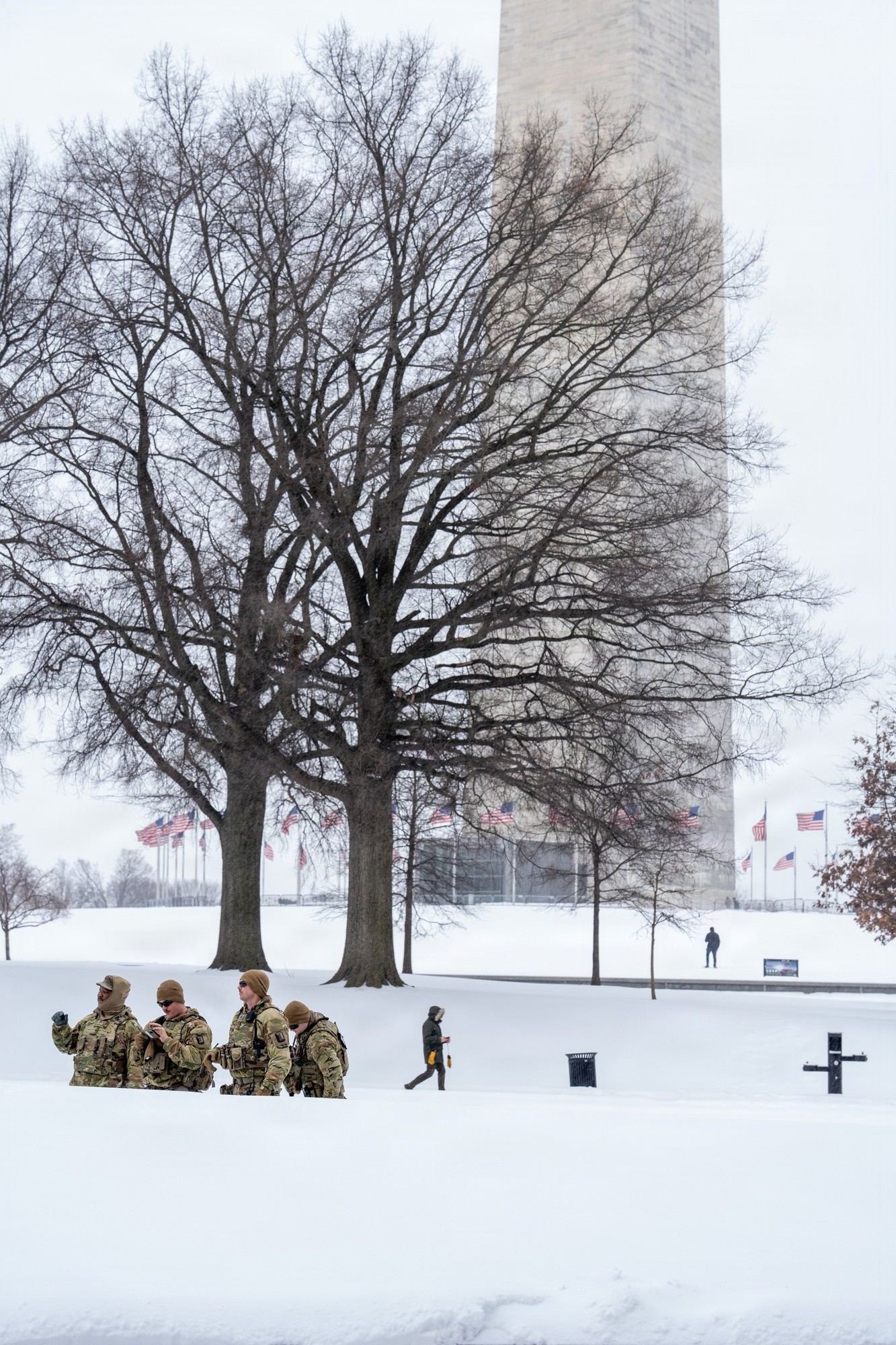 WASHINGTON — Snow fell steadily as a military Humvee eased through Washington’s streets, tires crunching over packed ice while traffic lights reflected off slush-covered pavement. Inside the vehicle, Col. Larry Doane, commander of Joint Task Force-District of Columbia, scanned a digital map, tracking patrols spread across the city as a winter storm tightened its grip.