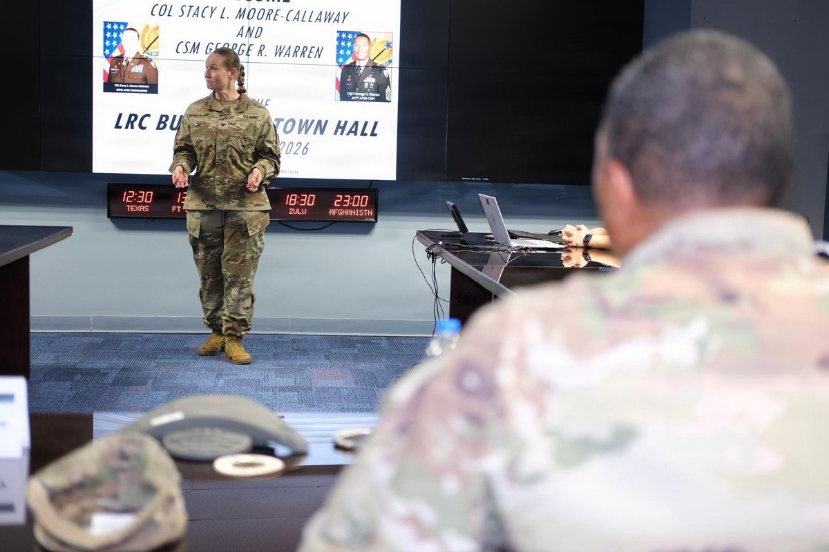 – Col. Stacy L. Moore-Callaway, commander of the 407th Army Field Support Brigade, and Command Sgt. Maj. George R. Warren, brigade command sergeant major, visited the Logistics Readiness Center (LRC) at Fort Buchanan Feb. 12 as part of a battlefield circulation focused on readiness and sustainment operations across the Caribbean.