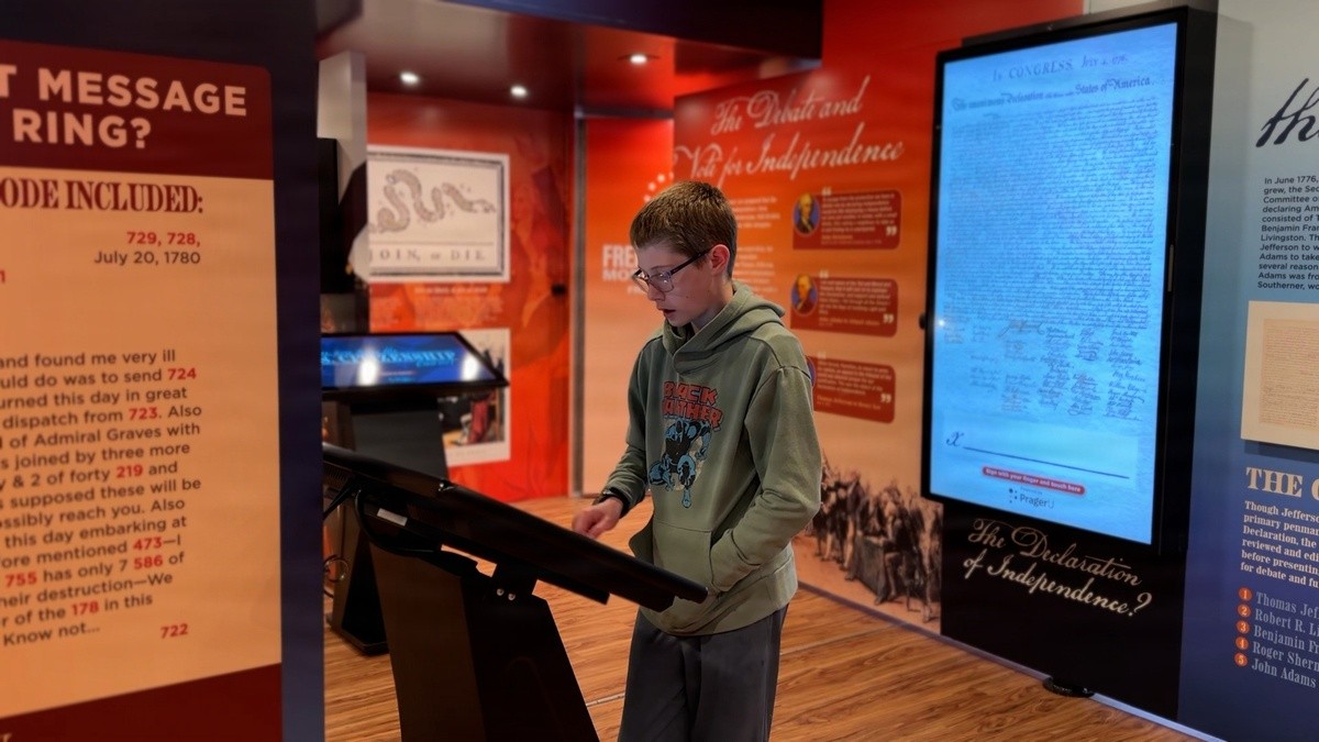 Housed in a massive, custom-built trailer, the museum features high-definition interactive screens, rare historical artifacts, and an artificial intelligence-powered George Washington that greets visitors as they enter. The exhibit is designed to be entirely self-guided, allowing families to move through the displays at their own pace.