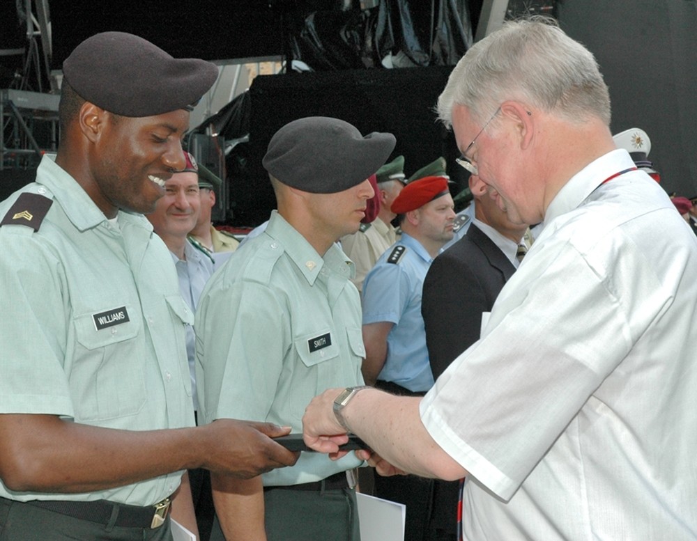 The men and women were singled out for contributions ranging from German-American sports club involvement to rendering first-aid after German citizens suffered an injury or illness. Other special citations included contributions to community quality of life and humanitarian goodwill efforts downrange.