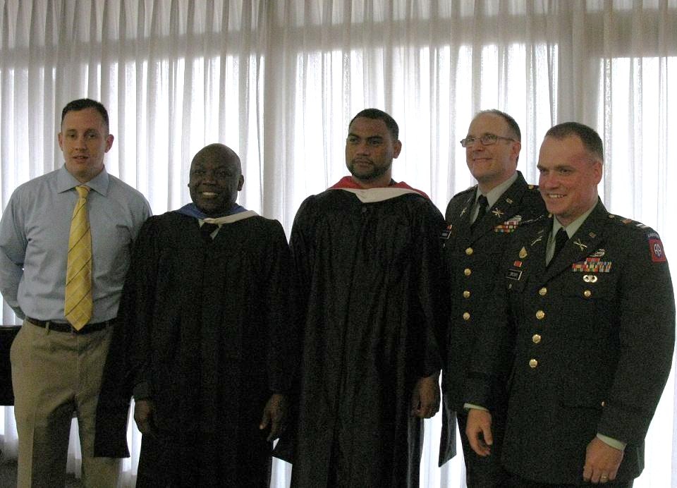 Capt. Gates Brown, retired Capt. Wes Fine, retired Capt. David Holden, Capt. Tim Hornik, Chief Warrant Officer Ari Jean-Baptiste and retired Sgt. Rob Laurent, were the first six graduates from the Wounded Warrior Education Incentive.