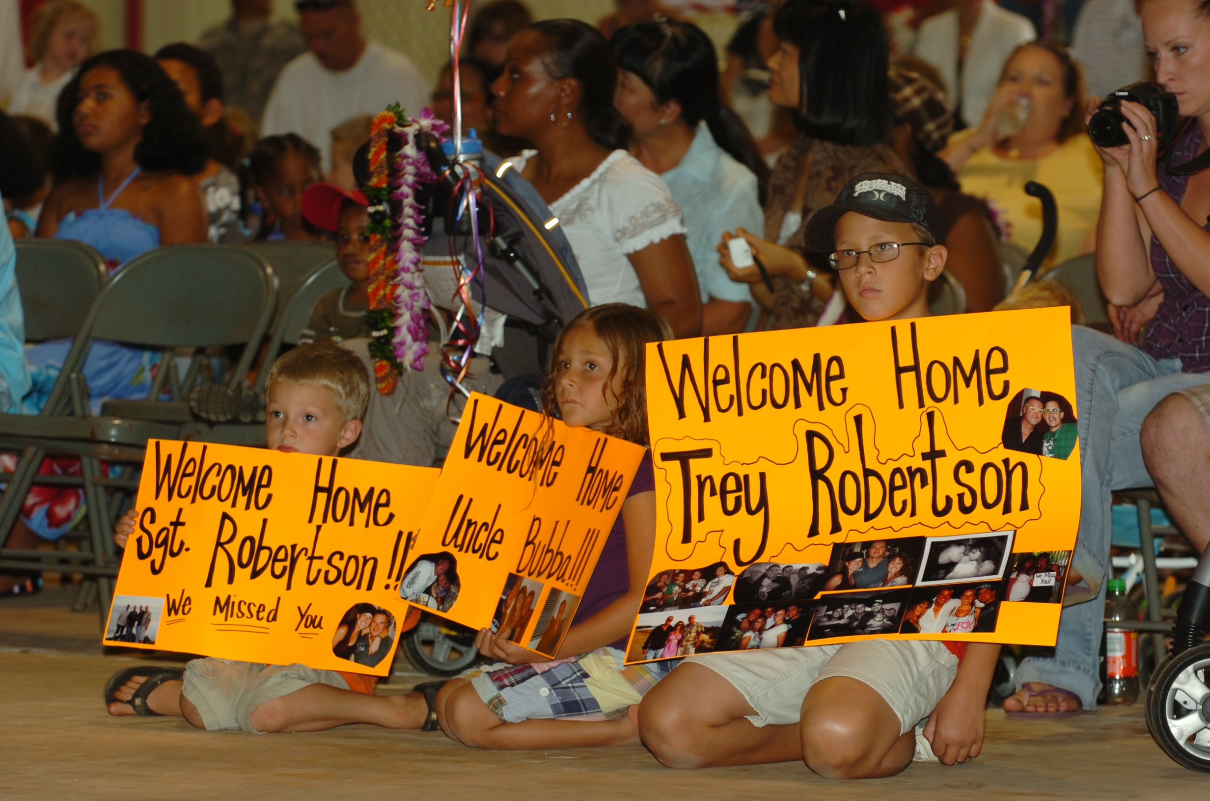 Children eagerly await the return of their redeploying Soldier during the Welcome Home Ceremony held at Wheeler Army Airfield, Hawaii, July 12, in honor of the Soldiers of the 25th Combat Aviation Brigade's successful 12-month rotation to northern Ir...