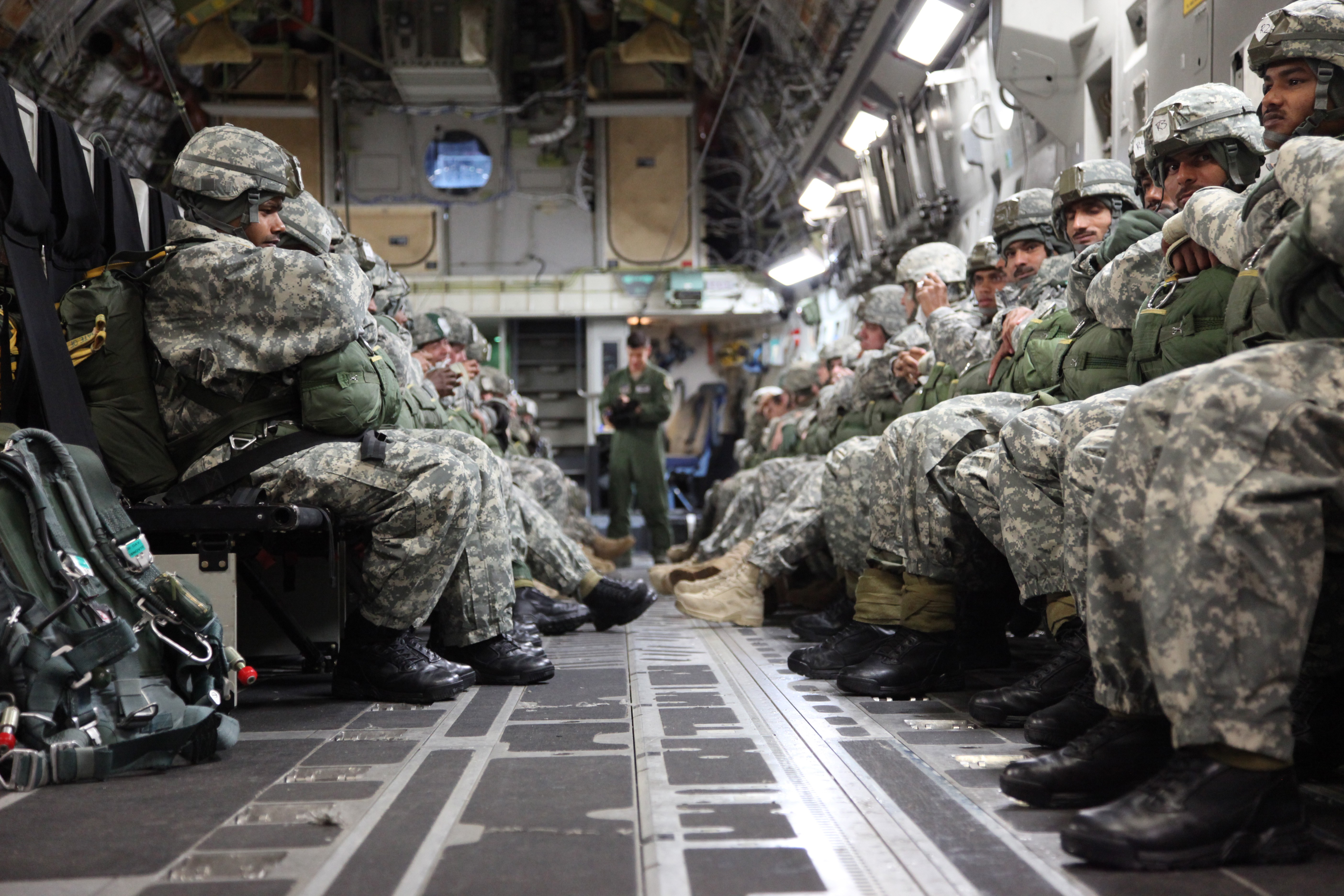 1 / 2 Show Caption + Hide Caption – U.S. and Indian army soldiers sit in the back of a C-17 aircraft awaiting commands from jump masters to begin their combined parachute jump Nov. 10. The jump was part of exercise Yudh Abhyas 2010, an exercise designed to promote cooperation between t... (Photo Credit: U.S. Army) VIEW ORIGINAL
