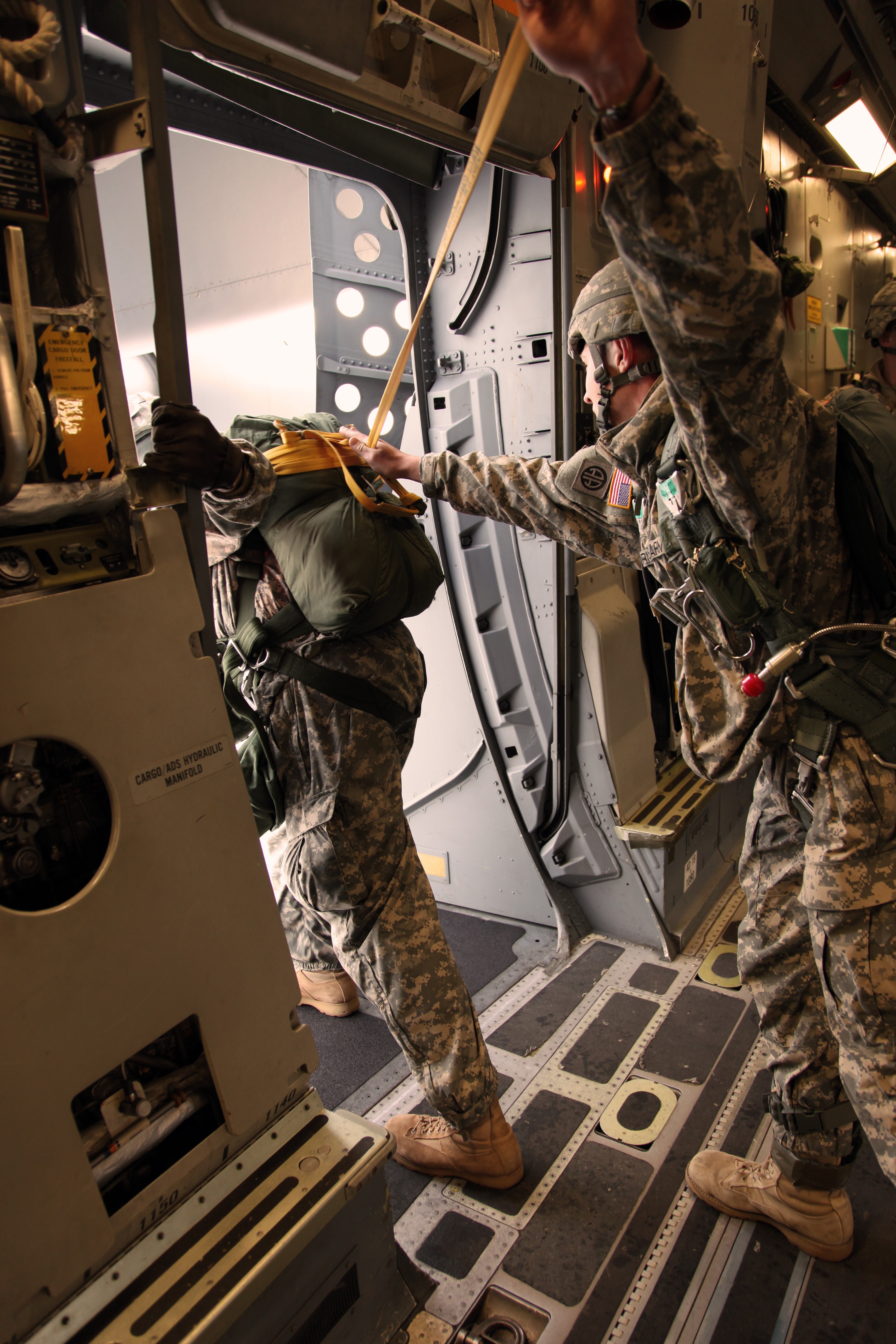 2 / 2 Show Caption + Hide Caption – A Soldier from 1st Squadron (Airborne), 40th Cavalry Regiment, 4th Brigade Combat Team (Airborne), 25th Infantry Division, assists the jump master with inspection of the aircraft door in preparation for the combined parachute jump Nov. 10. The jump w... (Photo Credit: U.S. Army) VIEW ORIGINAL