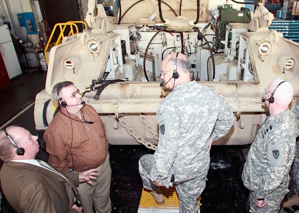 Stein's tour of the Nichols Industrial Complex included the Combat Vehicle Repair Facility, where he observed M88, M1, M113 and Stryker production; the turret assembly building; and the new Small Arms Repair Facility, which is currently under construction and scheduled for completion later this year.