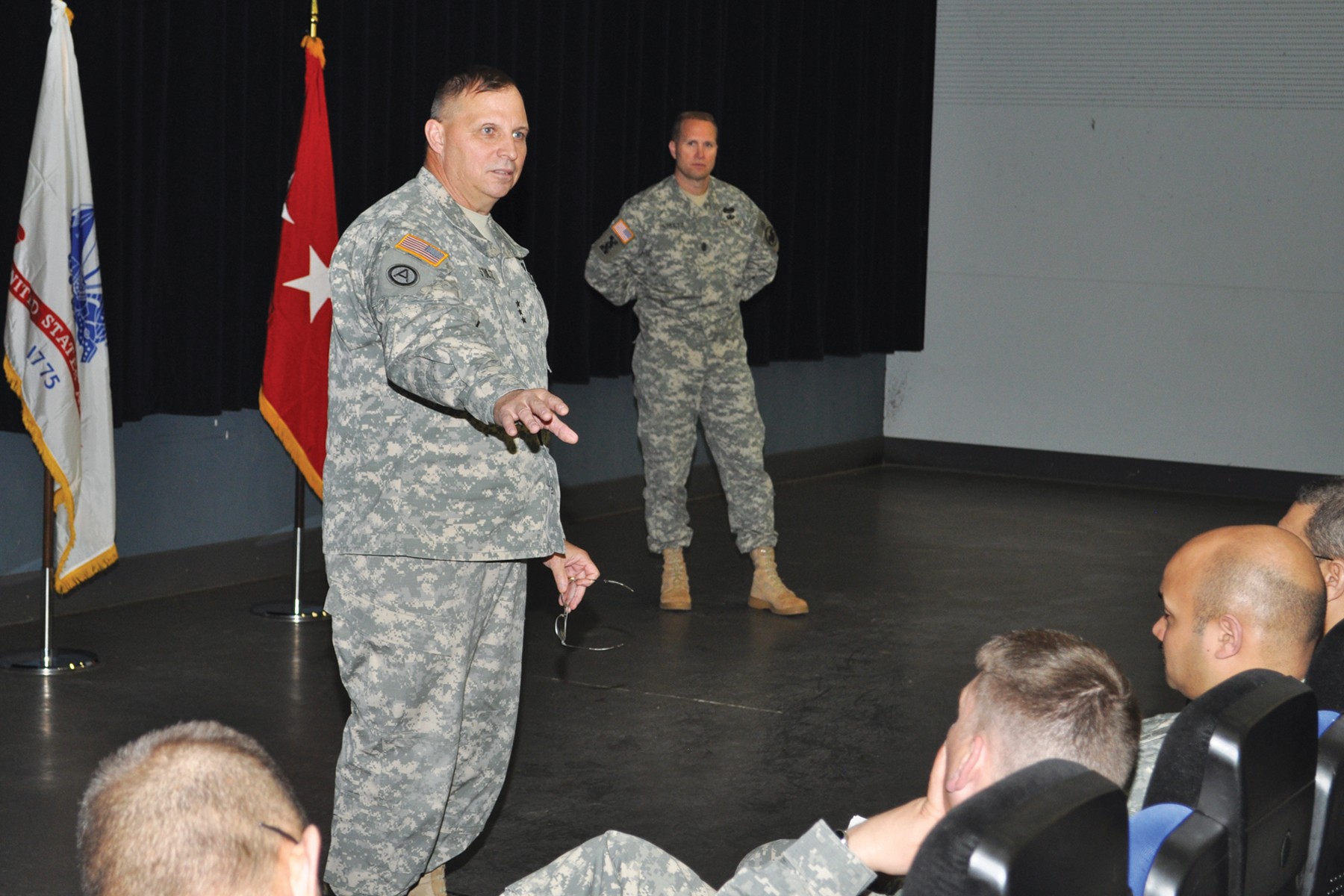 STUTTGART, Germany -- The U.S. Army Reserve commanding general and command sergeant major held a town hall meeting at Patch Barracks March 20 to brief reservists stationed in U.S. Army Garrison Stuttgart on the Army Reserve 2020 Vision and Strategy, the Army Reserve's road map for the future.