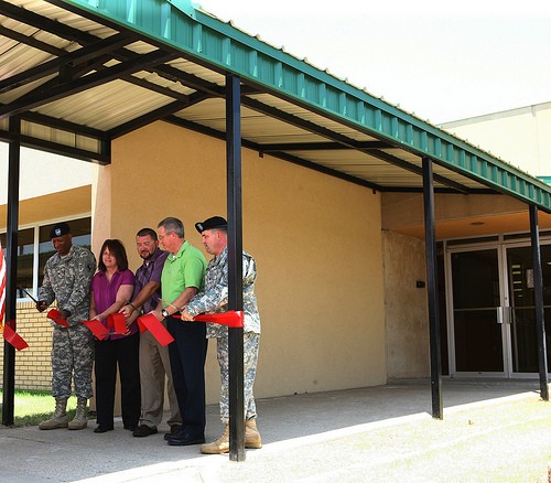 In his invocation, Chaplain (Capt.) Daniel Claypoole, 1st Battalion, 79th Field Artillery, said, “Lord God we dedicate this dining facility to you. We dedicate the Soldiers, the civilians, the cadre who will be sustained here, to you. Bless the hands who prepare the meals and us, who eat here.”