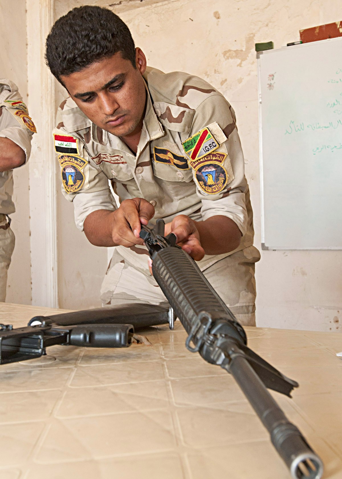 “Ghost” troopers from Troop D, 2nd Squadron, 7th Cavalry Regiment, 4th Advise and Assist, 1st Cavalry Division, observed Iraqi soldiers conduct weapons familiarization and maintenance techniques.