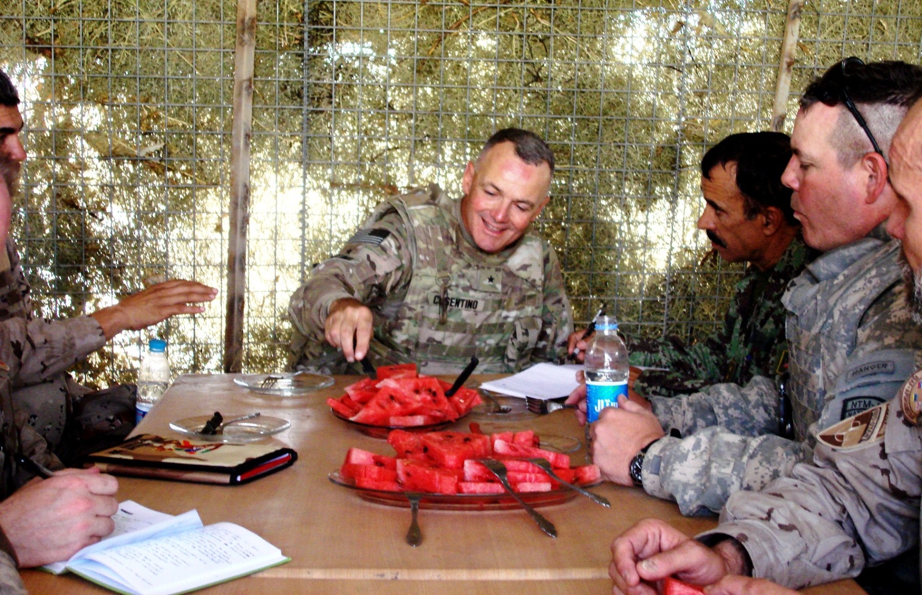 Cosentino met up with Col. Bradley Booth, commander, Regional Support Command-West, Camp Stone, and some of his staff, throughout a series of key leader engagements with the local Provincial Reconstruction Team, Observer Mentor Liaison Teams, Police Observer Mentor Liaison Teams, and Afghan leadership in the Badghis province.