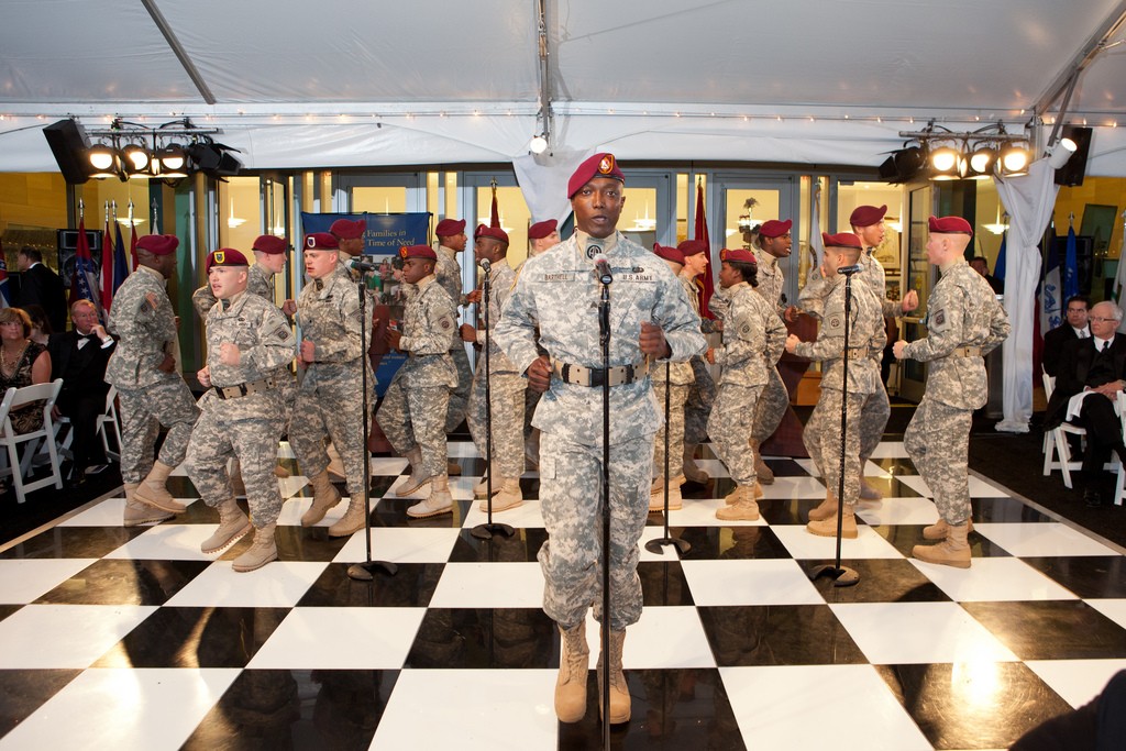 After collaborating with committee members and installation leadership, the new C4ISR Center of Excellence campus courtyard served as the new home. Three temporary, and air-conditioned tents were brought in by the private venture to host the venue. The event highlights included dinner and dancing, silent auction, and a performance by the 82nd Airborne Division's All American Chorus from Fort Bragg, N.C.