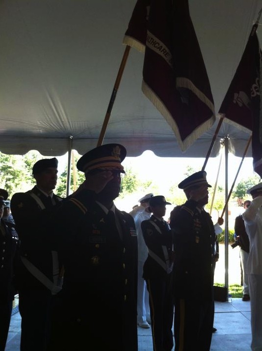 WASHINGTON, DC (July 27, 2011) -- Lt. Gen. Eric B. Schoomaker, U.S. Army Surgeon General, addresses an audience of over 1,000 during the colors casinge ceremony at Walter Reed Army Medical Center (WRAMC). Schoomaker was formerly assigned as WRAMC co...