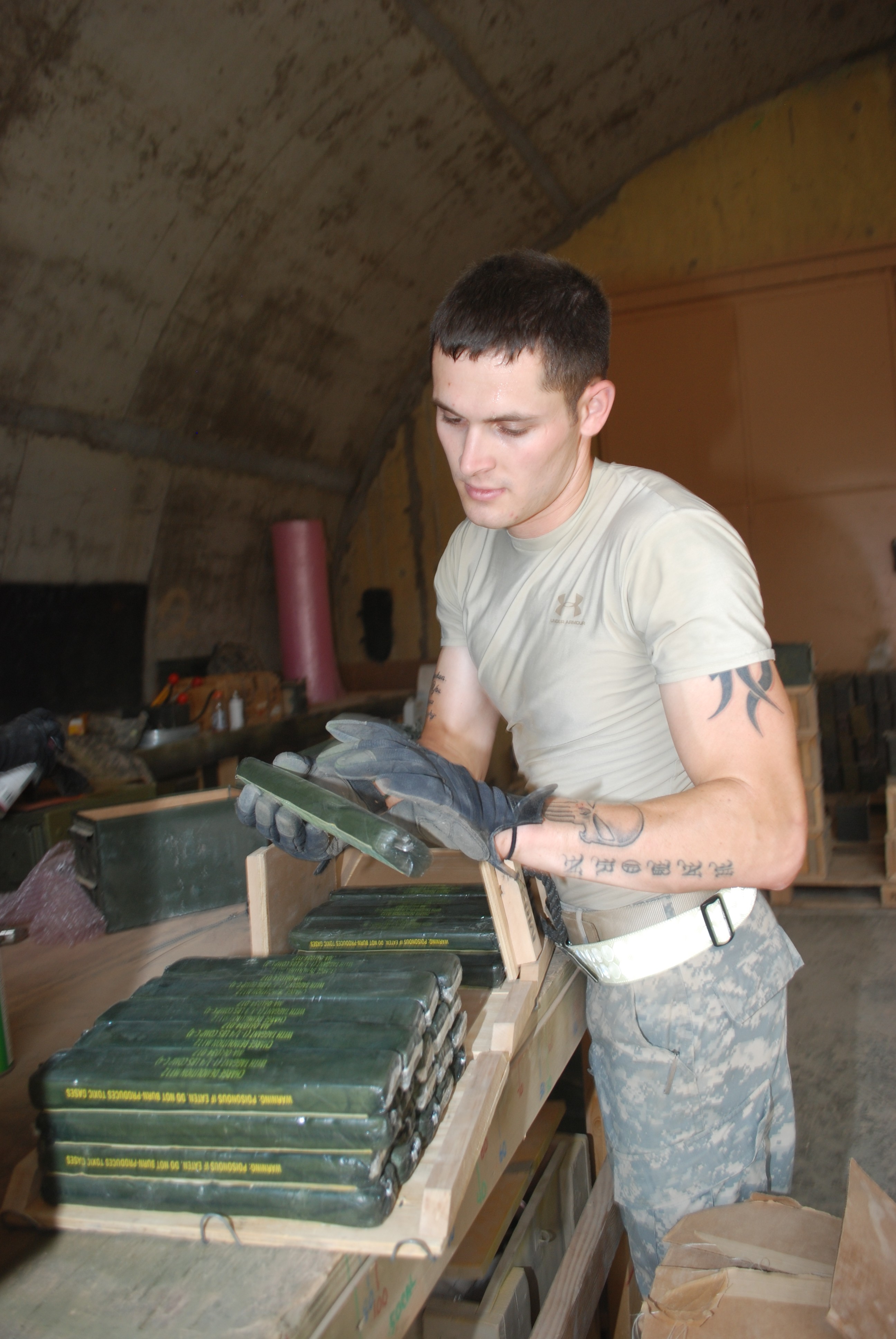 Whether it is bricks of C4 plastic explosive or M-67 fragmentation hand grenades, it is all inspected, prettied up and repackaged for another round.