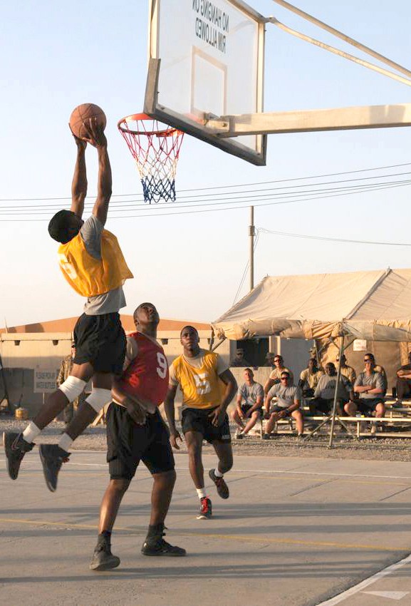 KANDAHAR AIRFEIELD, Afghanistan (July 21, 2011) " With the basketball championship here heading toward its final game, no one was sure who would take it all, but several fans were leaning toward the Dragonlords, a team from Task Force Thunder (159th Combat Aviation Brigade).