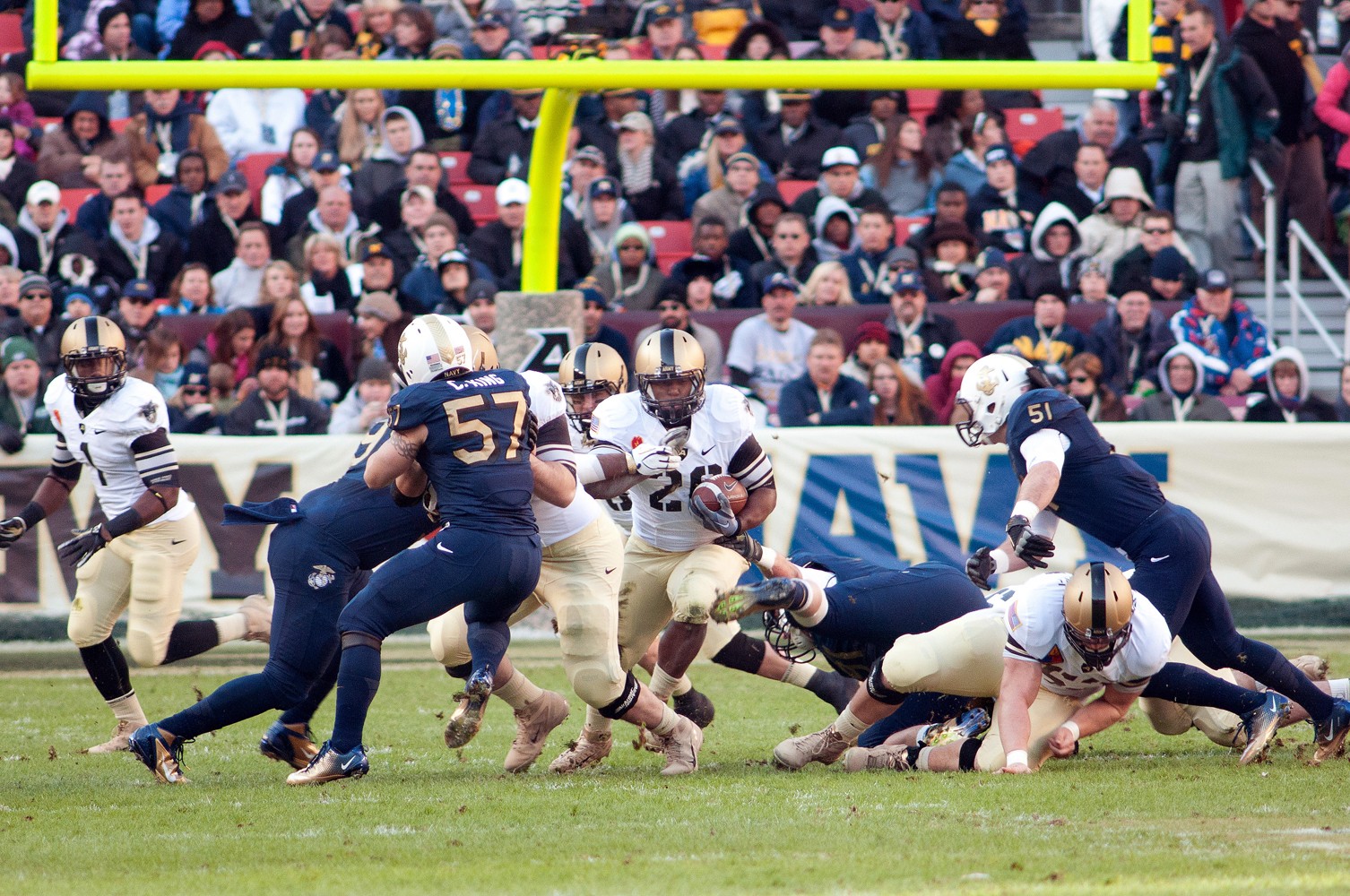 LANDOVER, Md. (Army News Service, Dec. 11, 2011) -- Twice the 112th showdown between the Black Knights and Navy was tied, and it looked close all the way into the fourth quarter, but Army couldn't prevent the midshipmen from scoring two field goals, making the final score 27-21.