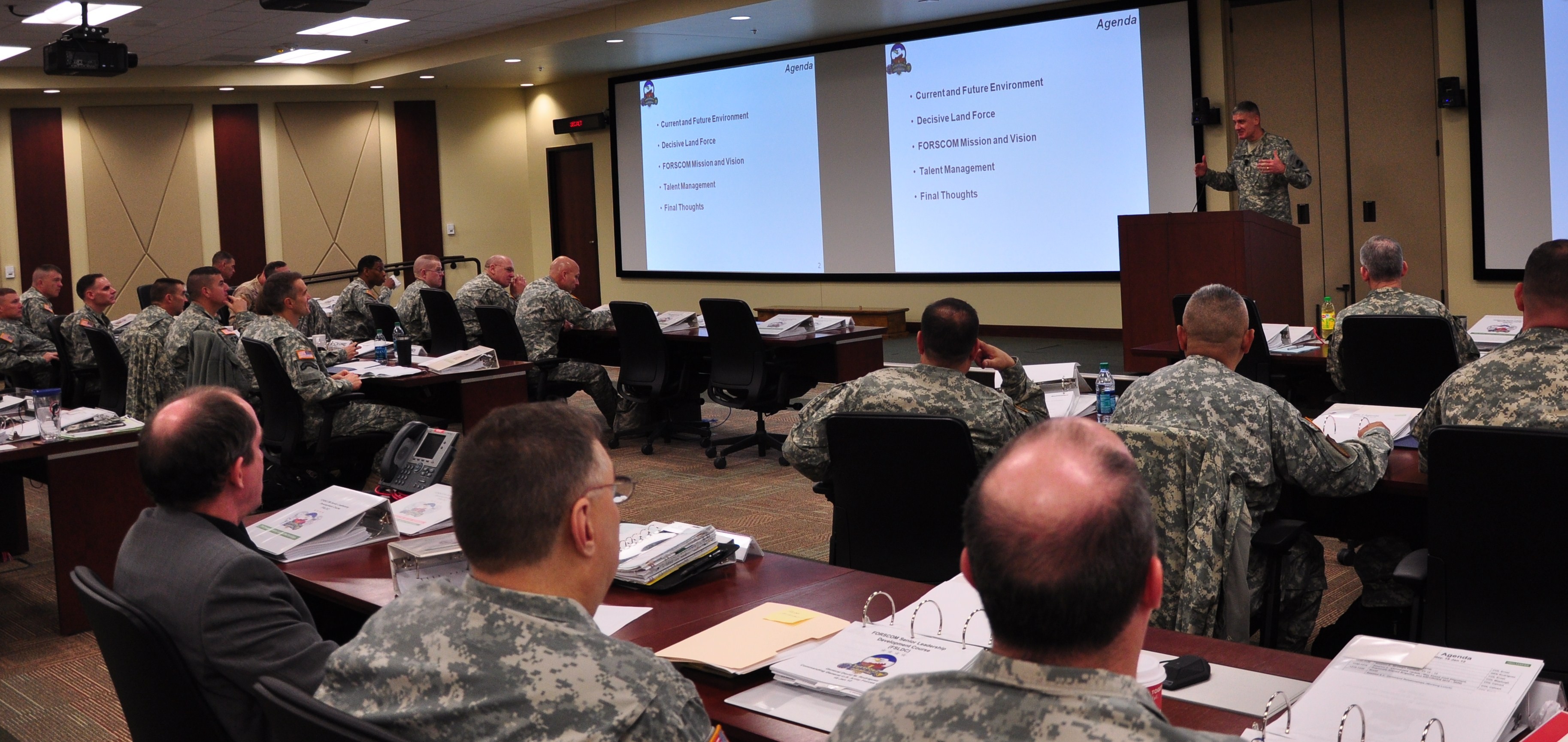 FORT BRAGG, N.C. (Jan. 18, 2012) Gen. David M. Rodriguez, commanding general of U.S. Army Forces Command (FORSCOM), addresses more than 65 senior leaders and staff members of the command during the opening session of the FORSCOM Senior Leadership Dev...