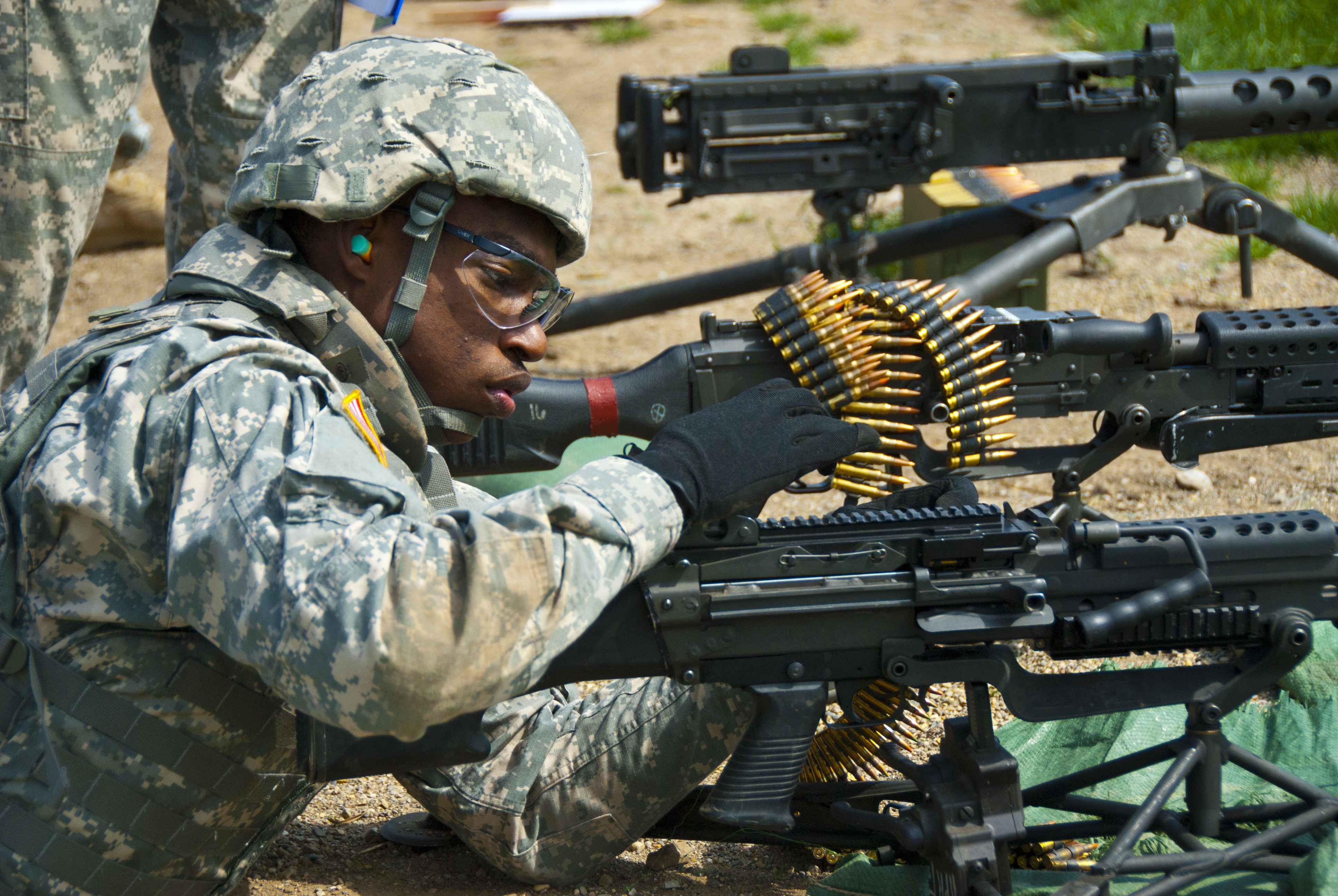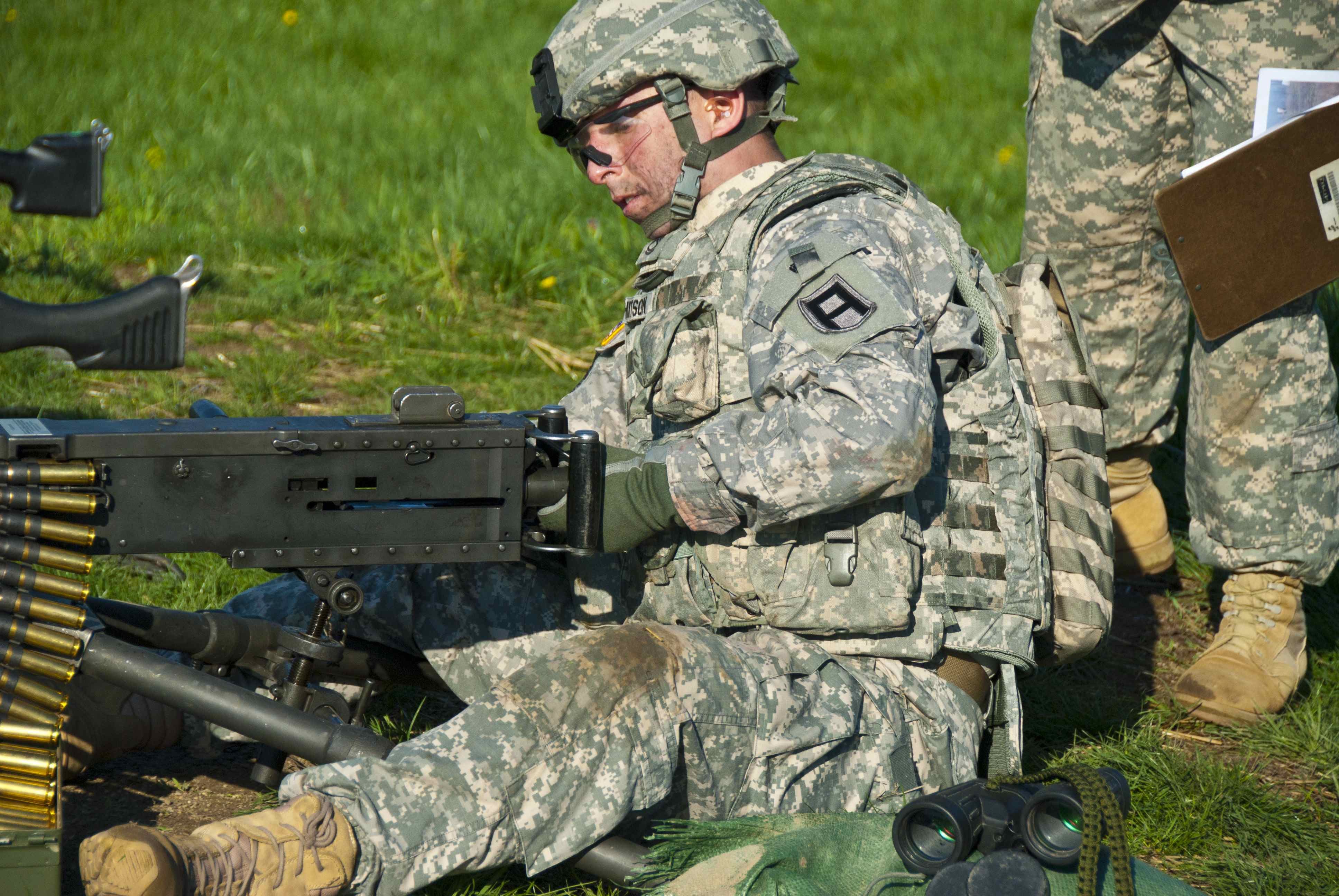 Sgt. 1st Class Bo Whitson makes adjustments before preparing to fire a .50CAL during the First Army Division East Noncommissioned Officer and Soldier of the Year Competition held at Camp Atterbury Joint Maneuver Training Center, Ind. (U.S. Army pho...