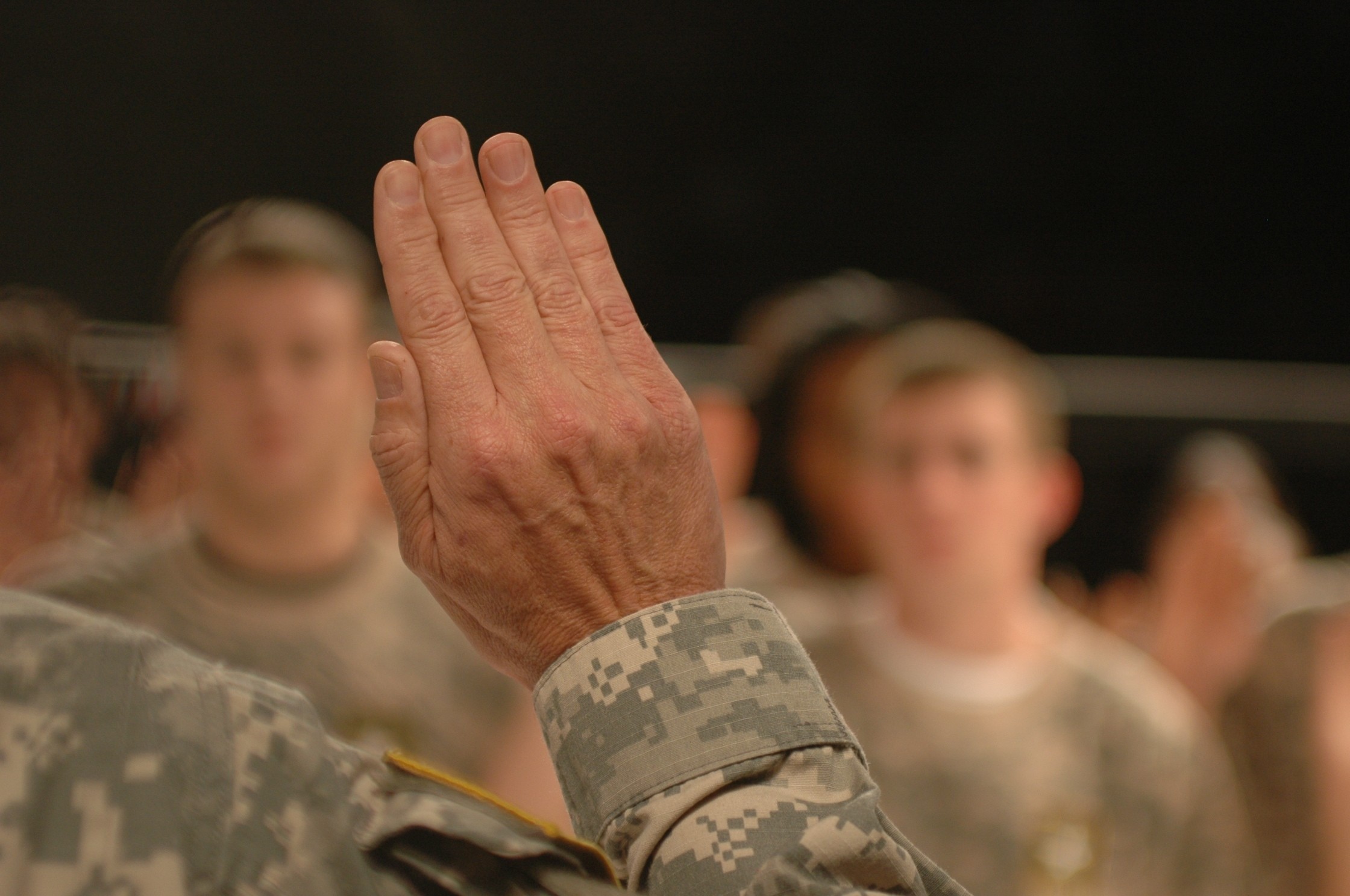 Before the ceremony, Schultz spoke with the future Soldiers for several minutes, imparting advice about the Army.