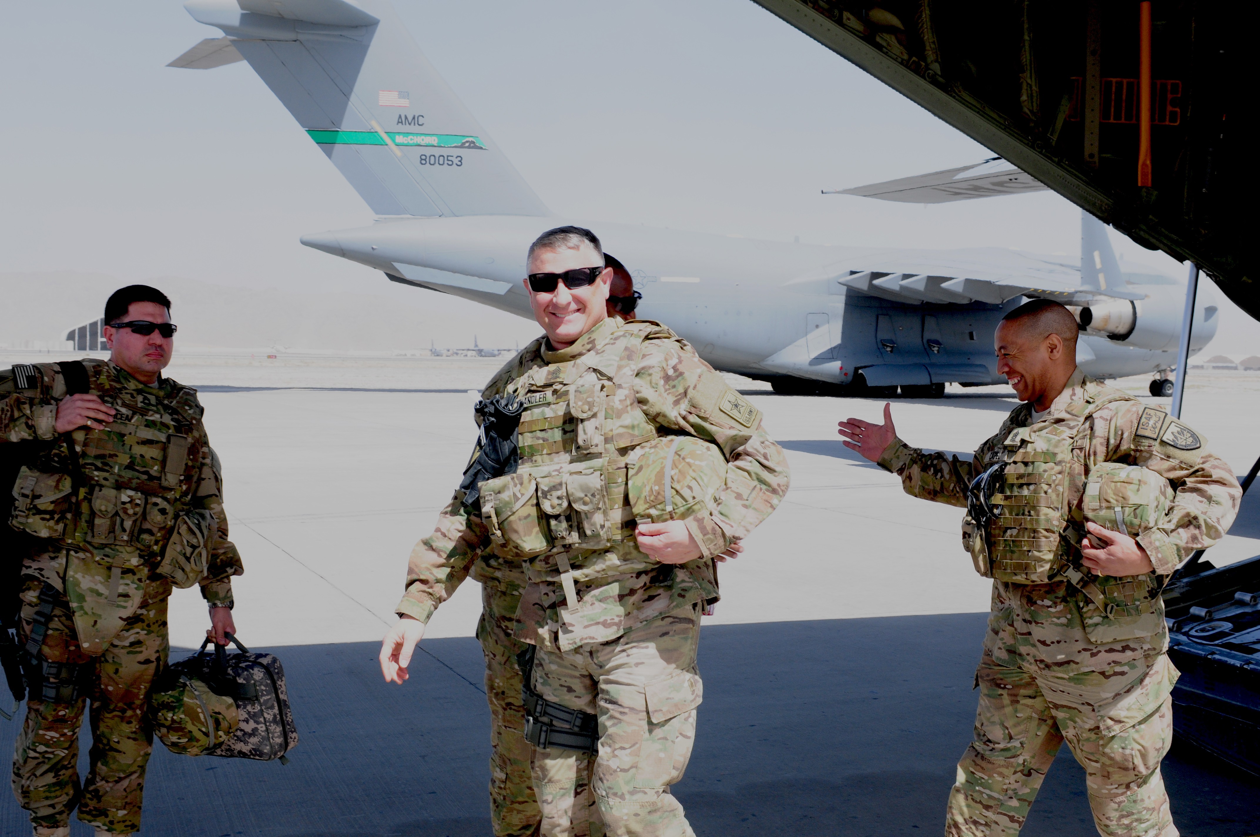 Sgt. Maj. of the Army Raymond F. Chandler III is greeted on the tarmac at Kandahar Airfield, Afghanistan, by Command Sgt. Maj. Bryant C. Lambert, Regional Command South and 82nd Airborne Division command sergeant major. Chandler arrived on KAF to mee...