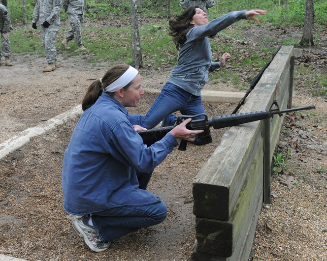 Maria Duncan has participated in a few Spouses' Day events before, but this was her first time on the firing range. "I think it's awesome. I'm loving the support we're getting and I love the shooting -- that was fun," she said. "It gives us insight on what our Soldiers do -- not just our husbands, but all the Soldiers and especially the trainees."