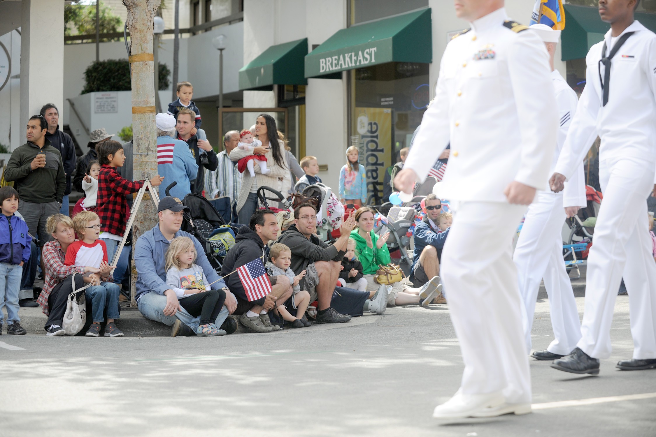 Despite occurring midweek this year, thick crowds lined Alvarado Street and Calle Principal in downtown Monterey for the return of the city's 4th of July parade. On a day that commemorates the nation's declaration of independence from the British monarchy in 1776, enthusiastic spectators demonstrated their patriotism by waving small American flags and giving a standing ovation to military units that marched near the head of the parade.